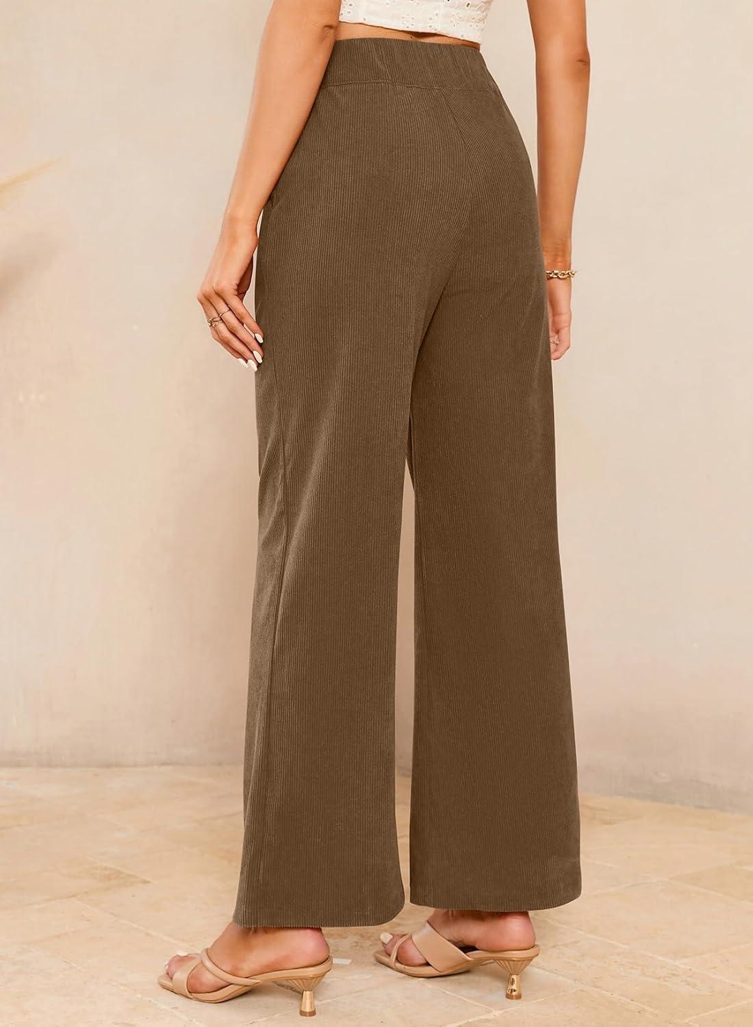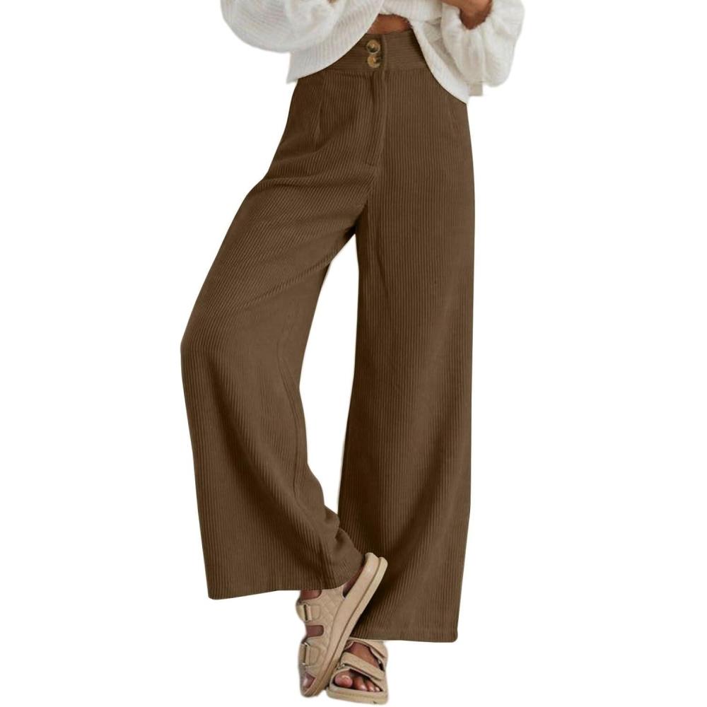 Sidefeel Corduroy Pants for Women 2025 Casual High Waisted Double Buttoned Stretchy Loose Fit Wide Leg Pants with Pockets(Brown)