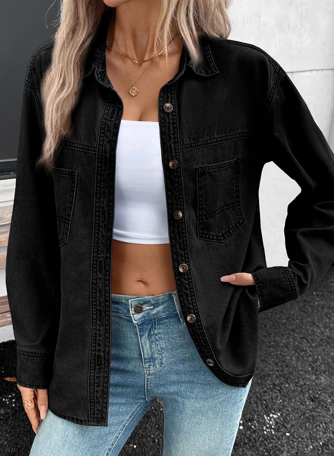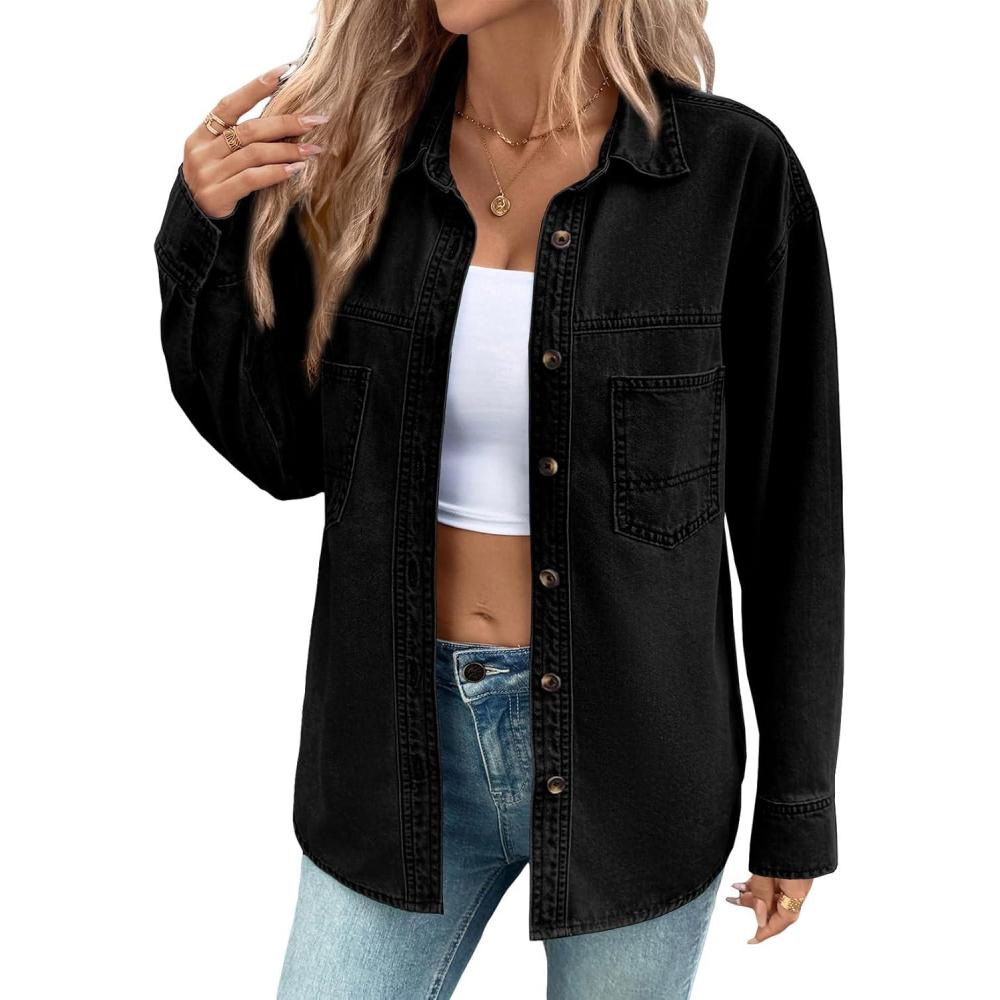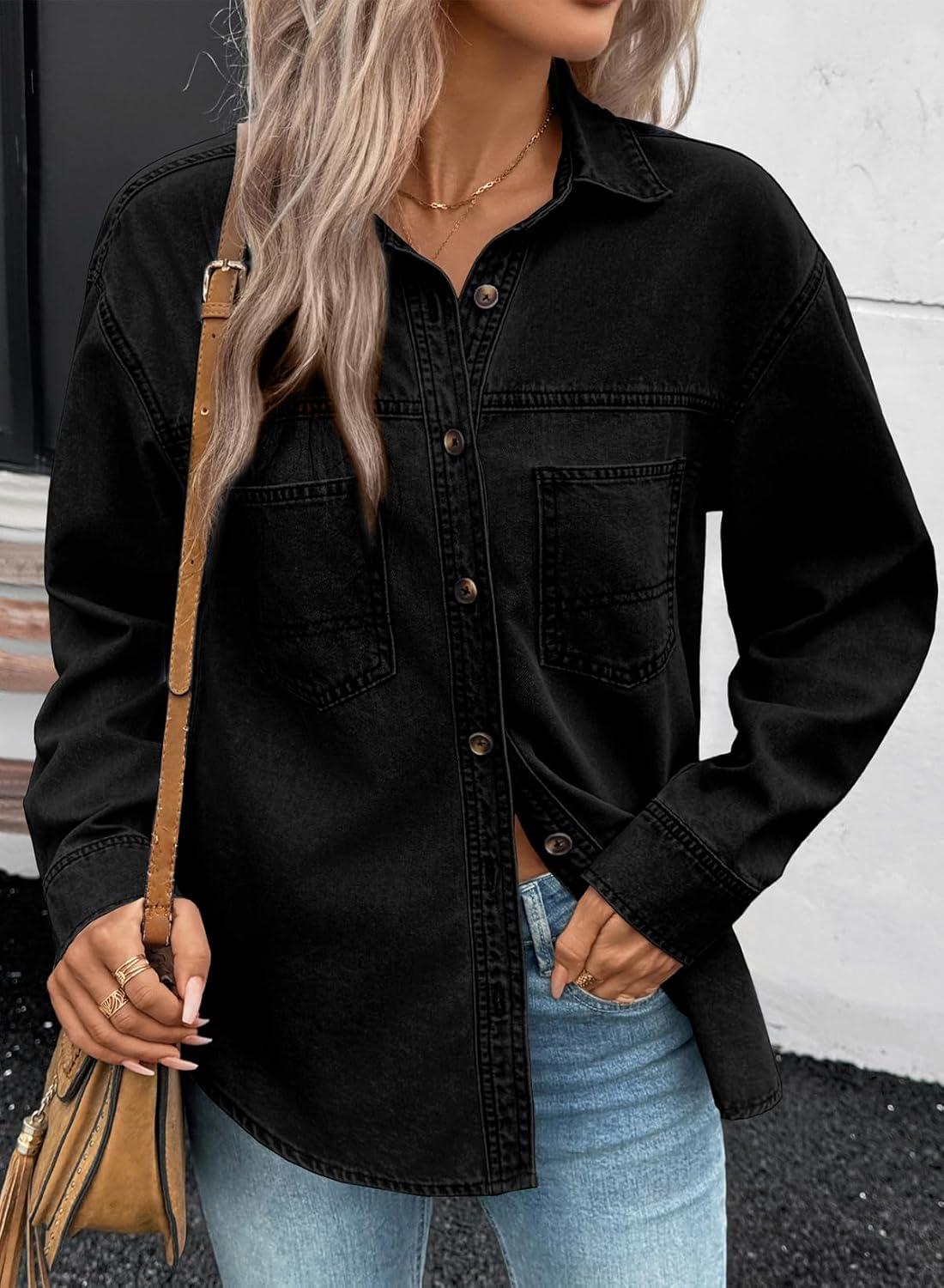 Get your hands on our newest Sidefeel Women Denim Shirts Oversized Long Sleeve Button Down Blouse V Neck Casual Top Shackets(Black) and enjoy a limited-time discount offer.