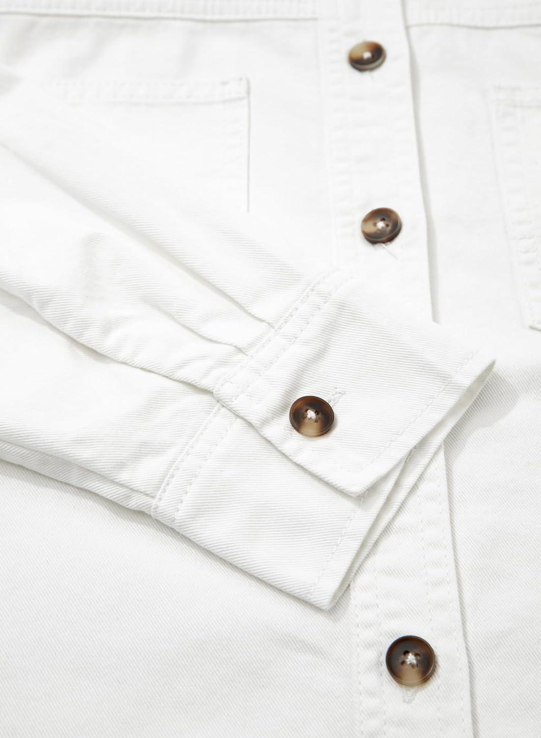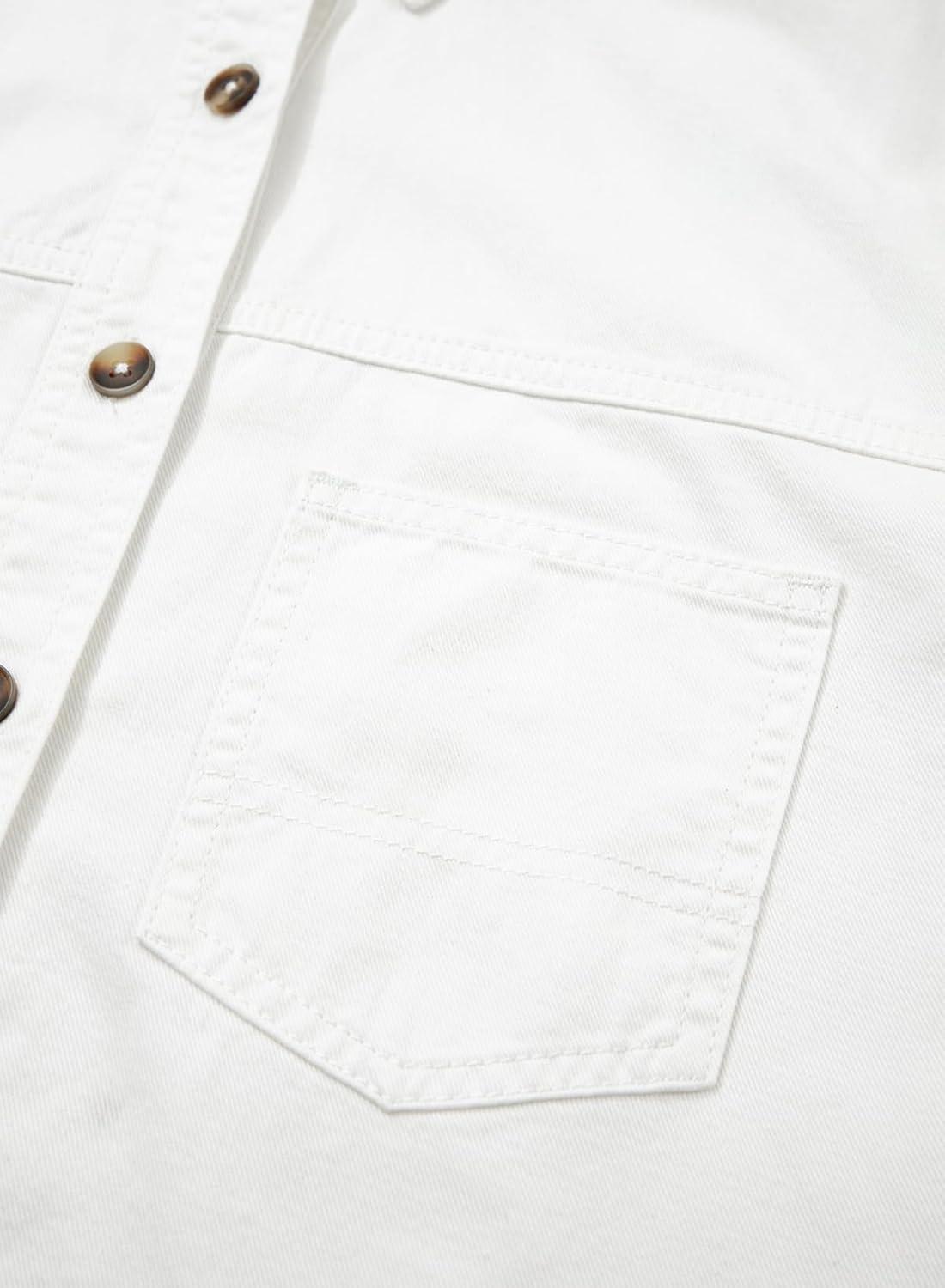 imageSidefeel Women Denim Shirts Oversized Long Sleeve Button Down Blouse V Neck Casual Top ShacketsWhite
