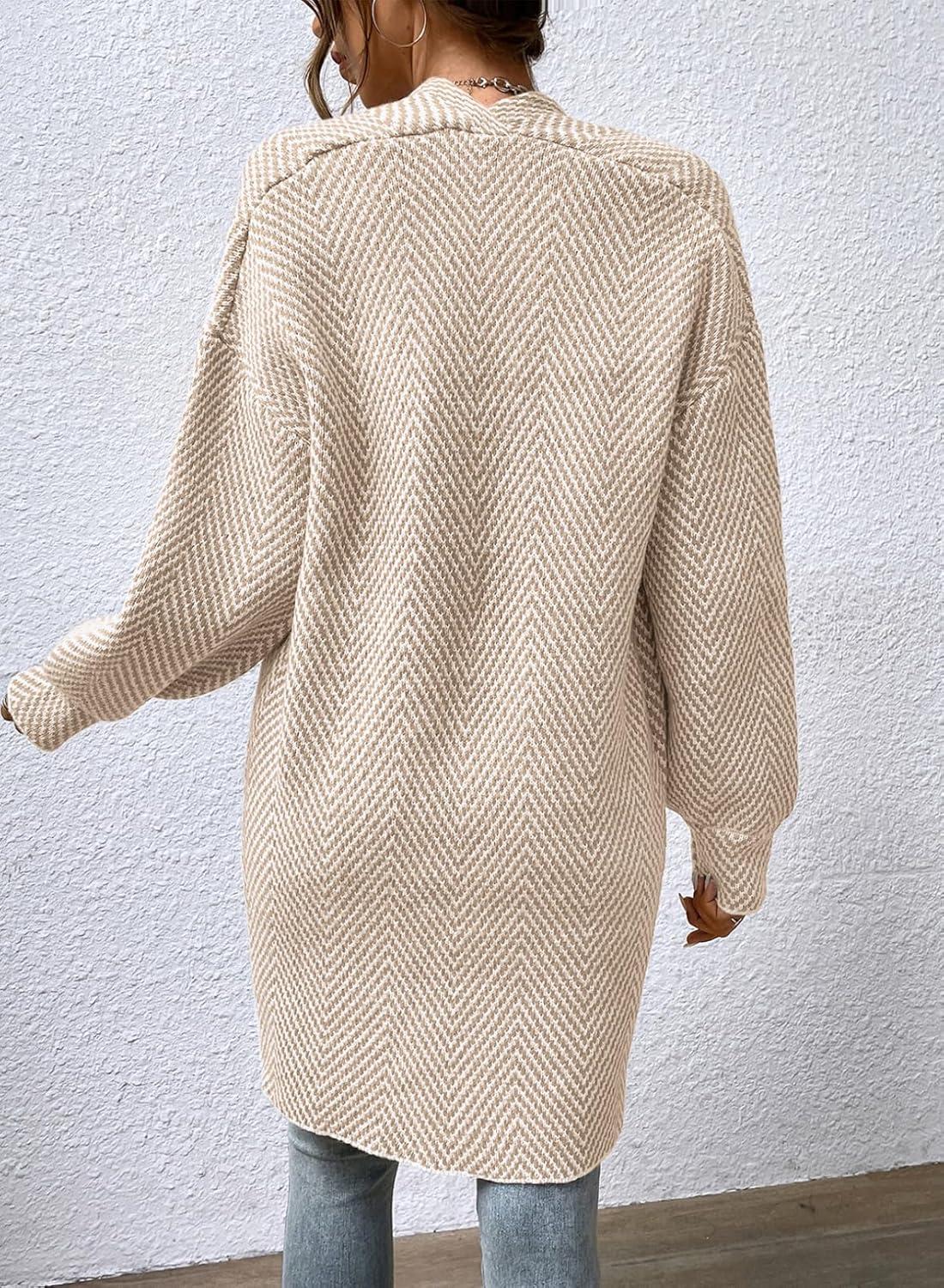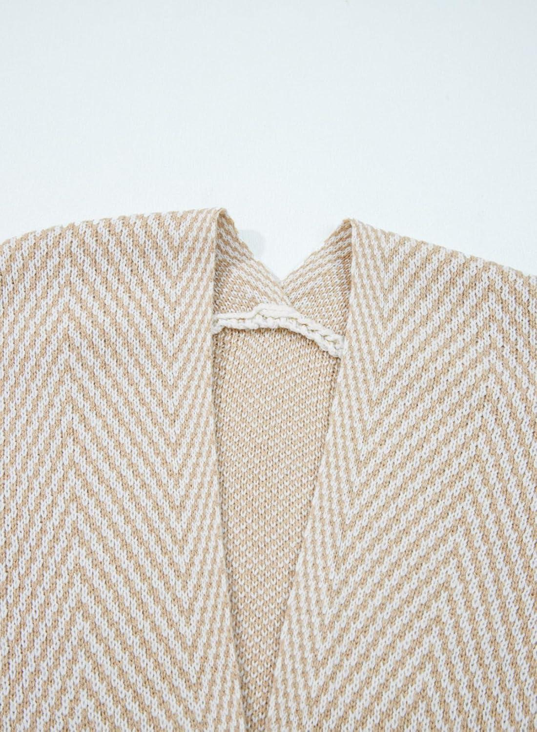 Sidefeel Womens 2025 Fall Outfits Long Sleeve Open Front Striped Cardigan Sweaters Chevron Chunky Knit Sweaters Coat(Apricot)