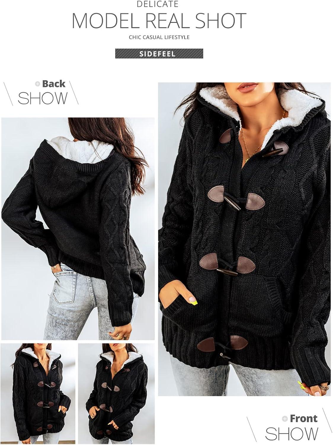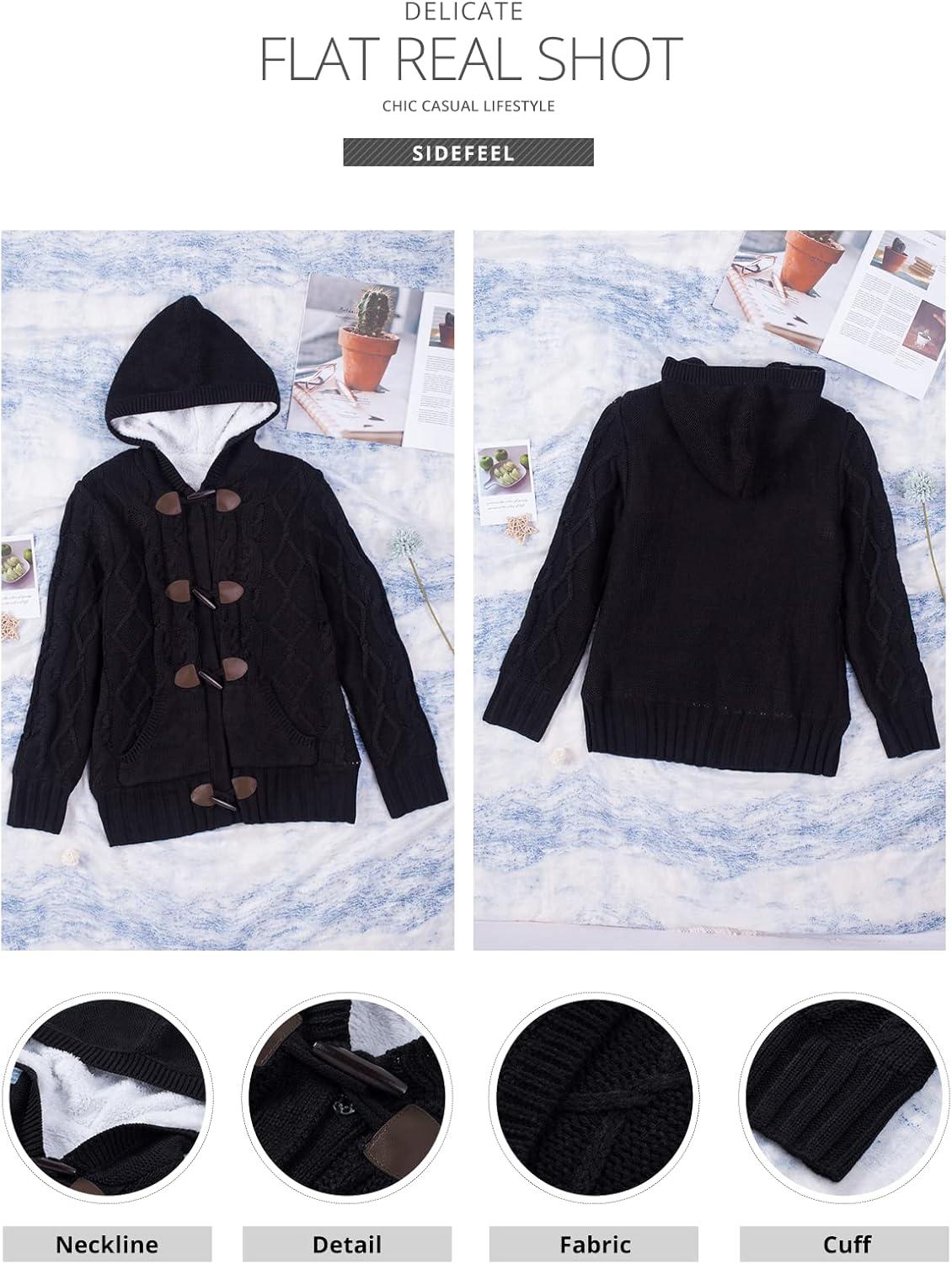 Sidefeel Women’s Cardigan Sweaters Hooded Fleece Lined Button Down Winter Sweater Coat(As Shown)