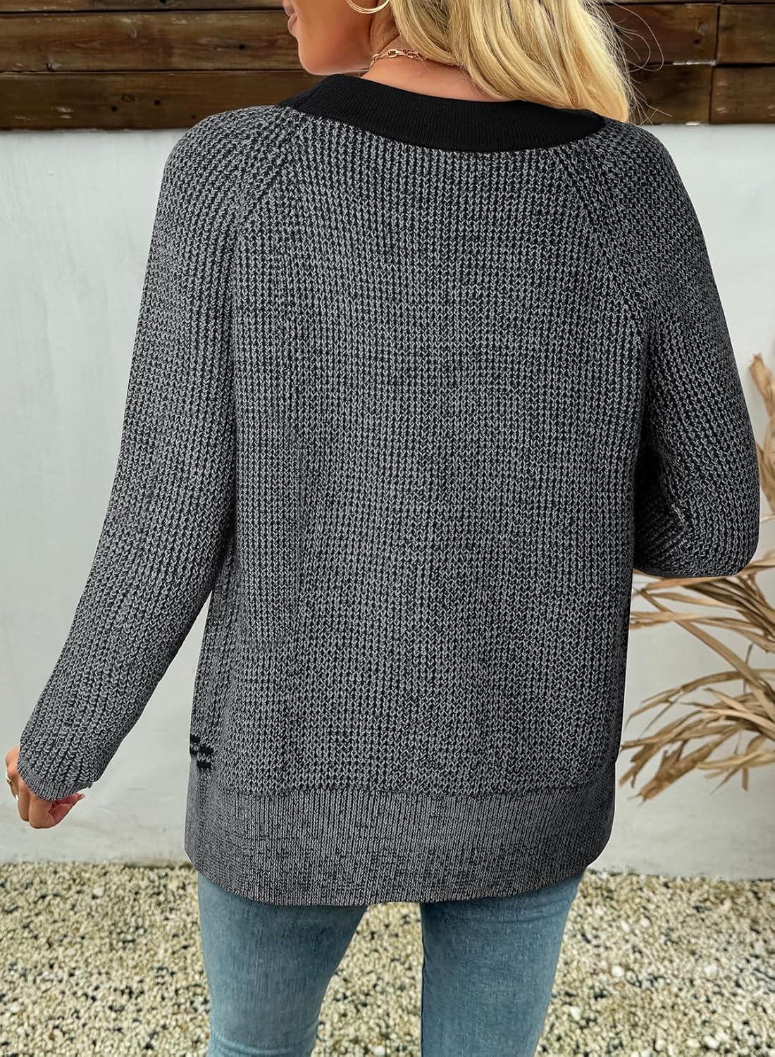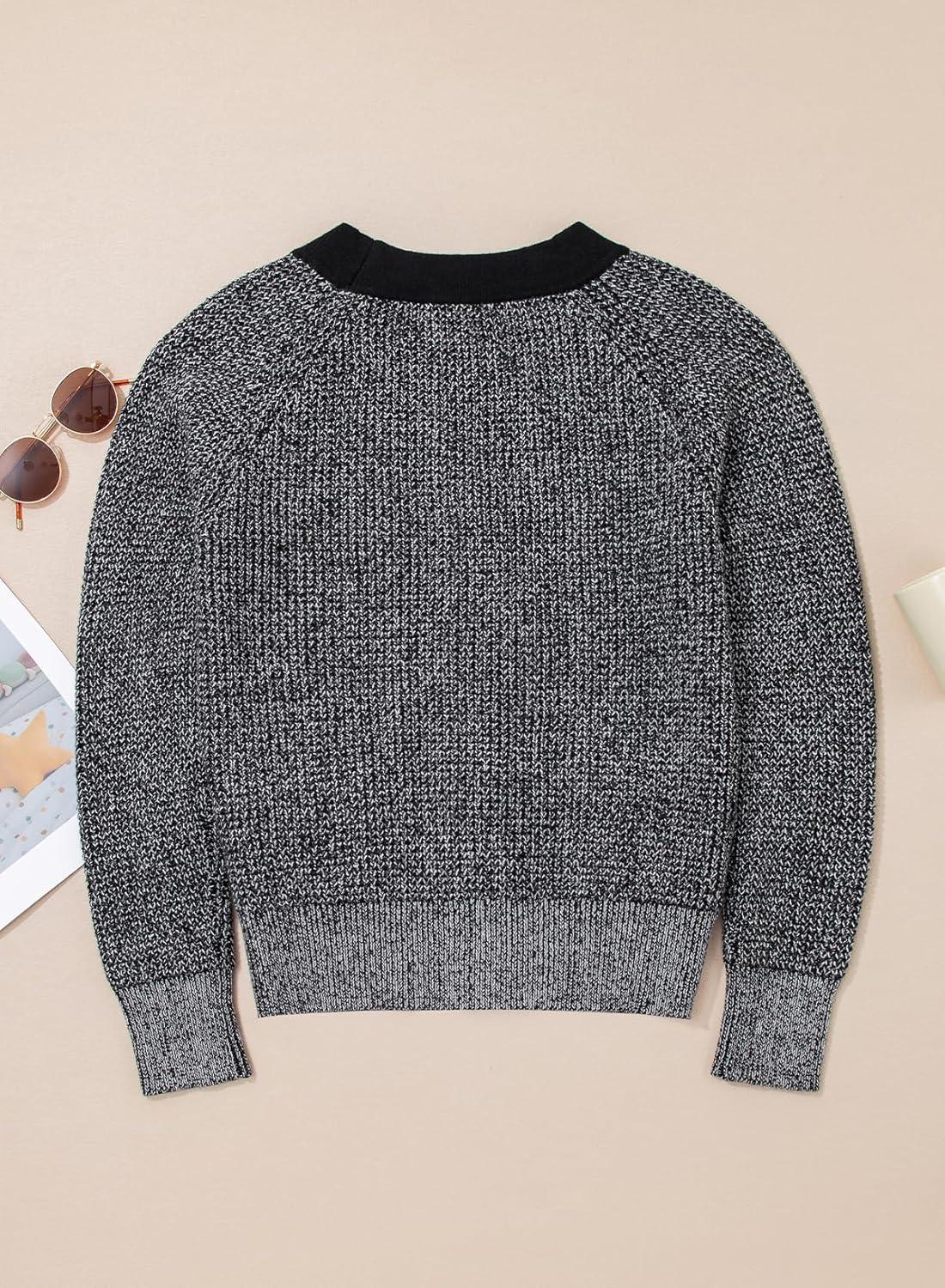 Sidefeel Women's Contrast Knit Cardigan Sweaters Casual Long Sleeve Open Front Button Down Trendy Jackets Outerwear(Black)