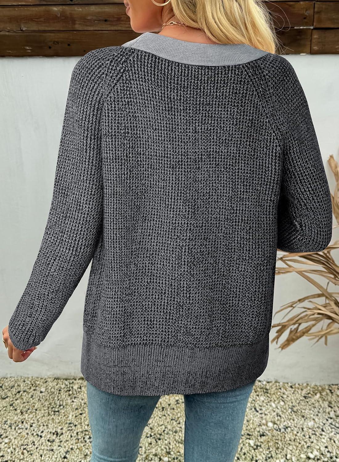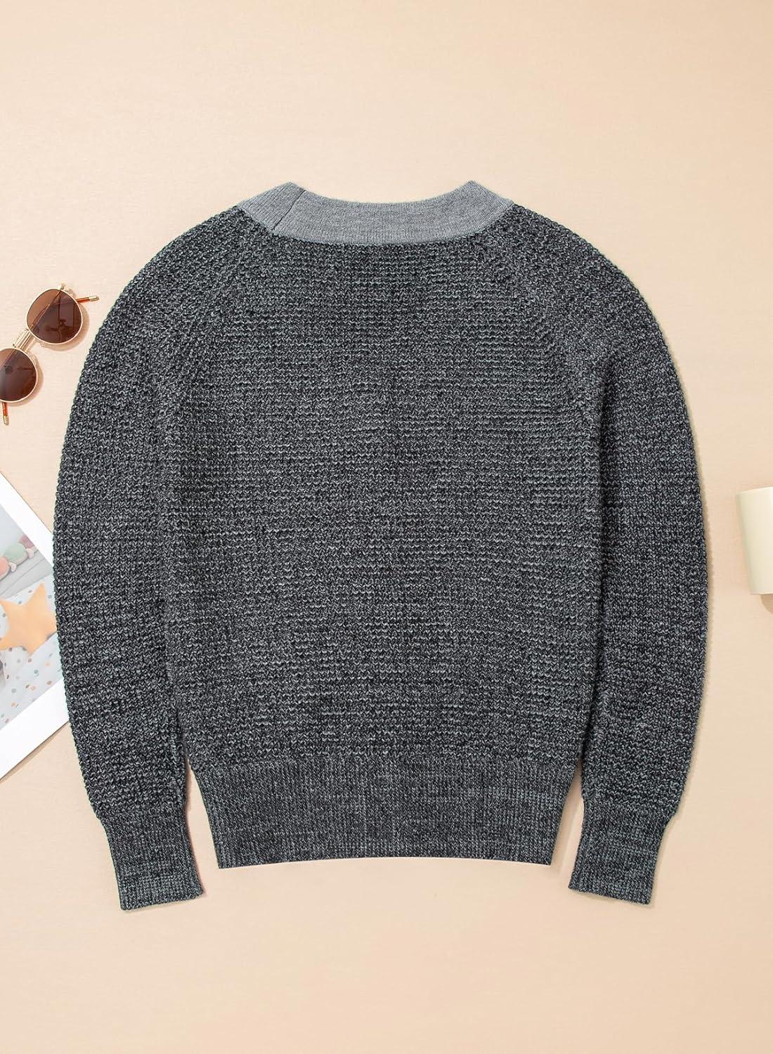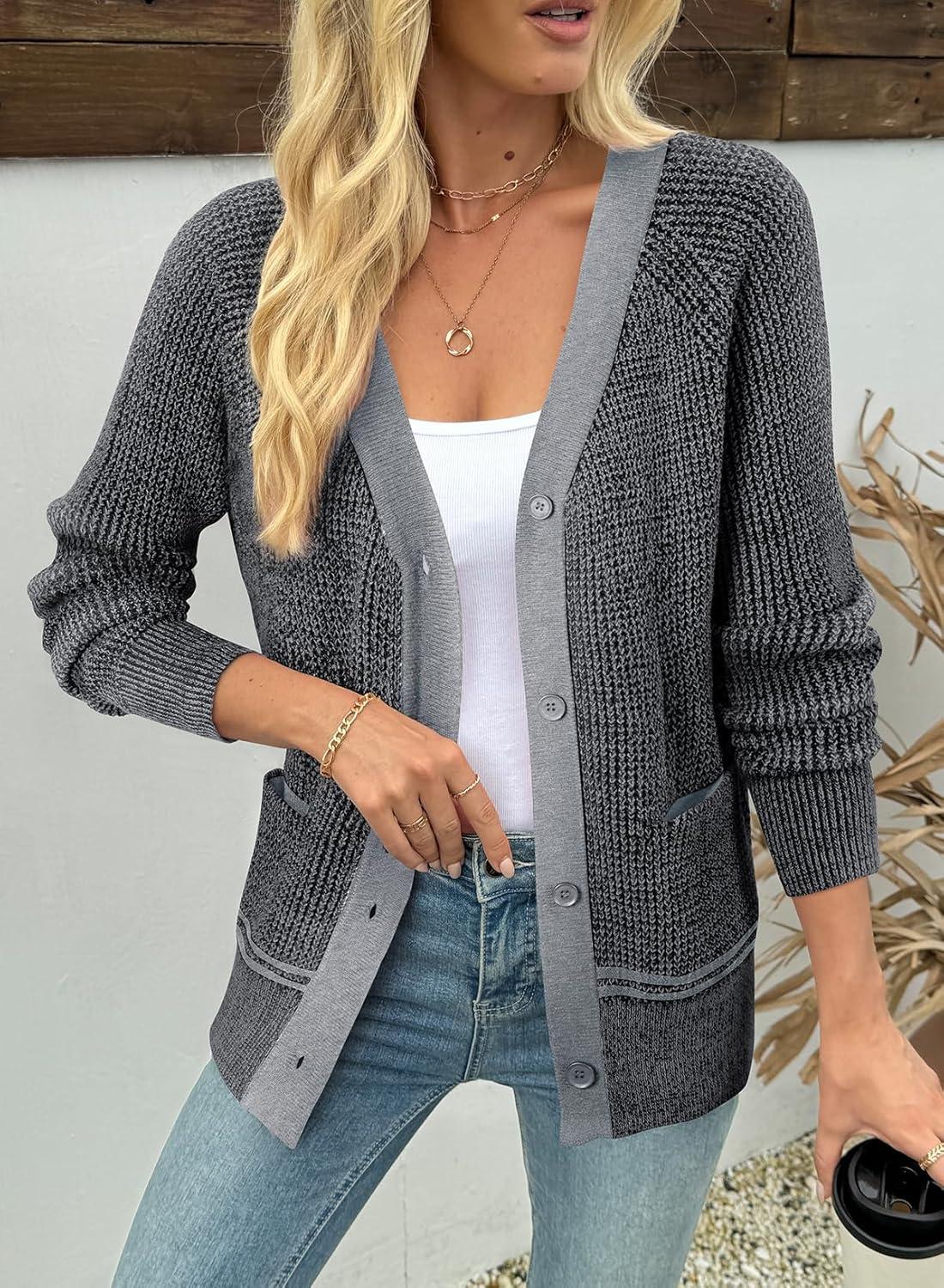 Sidefeel Women's Contrast Knit Cardigan Sweaters Casual Long Sleeve Open Front Button Down Trendy Jackets Outerwear(Gray)