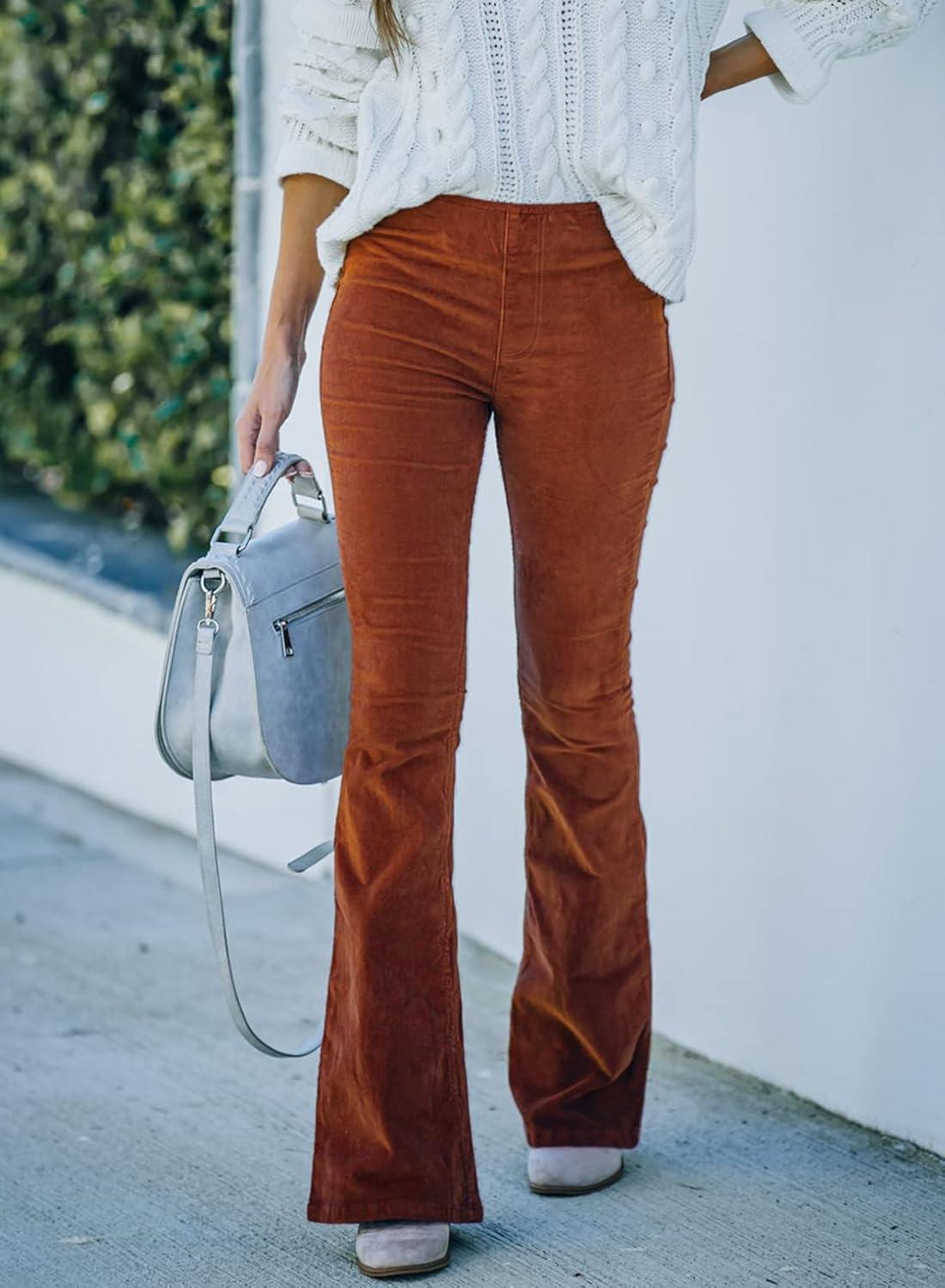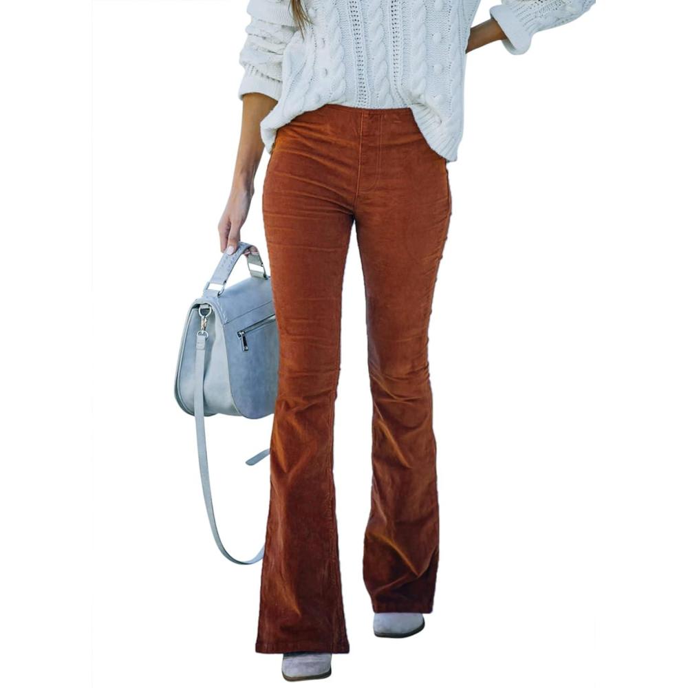 Sidefeel Women’s Corduroy Flare Pants Elastic Waist Bell Bottom Trousers 2025 Fall Pants(A Brown)