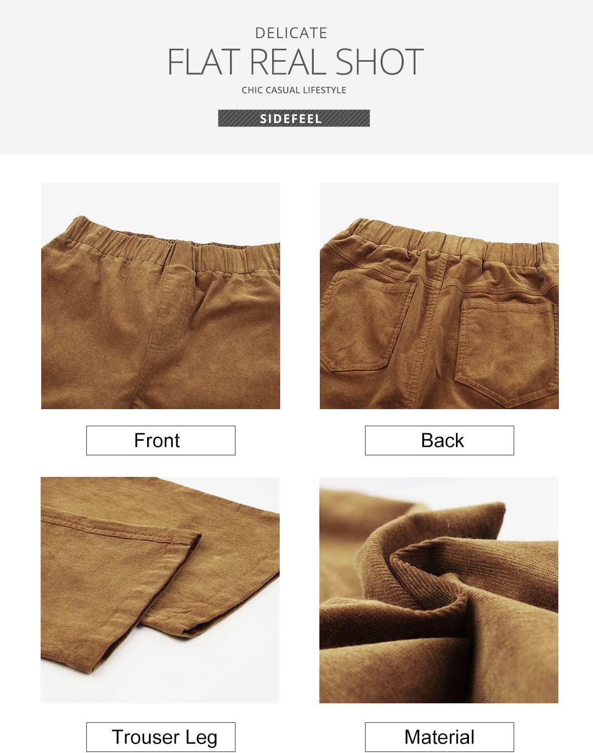 Sidefeel Women’s Corduroy Flare Pants Elastic Waist Bell Bottom Trousers 2025 Fall Pants(A Khaki)