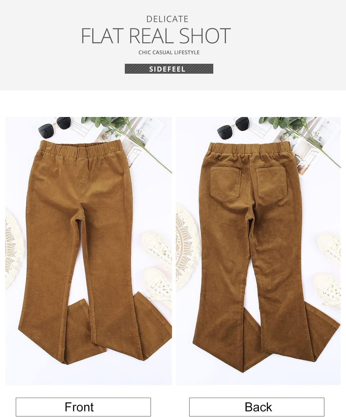 Sidefeel Women's Corduroy Flare Pants Elastic Waist Bell Bottom Trousers 2025 Fall Pants(A Khaki)