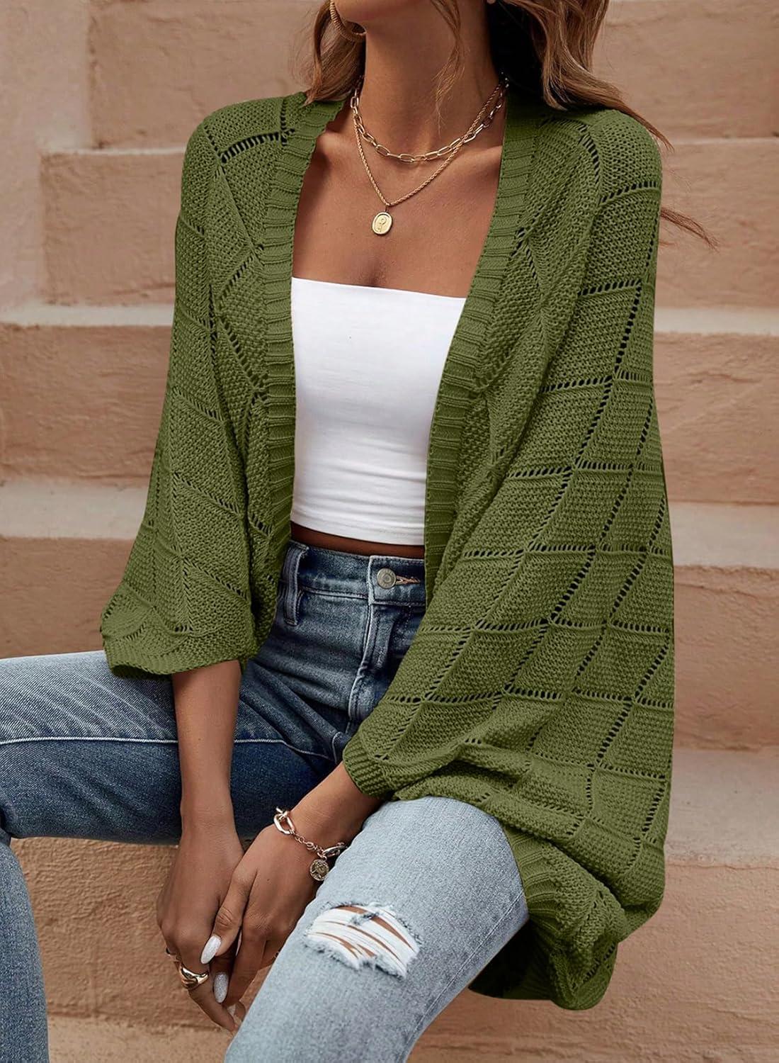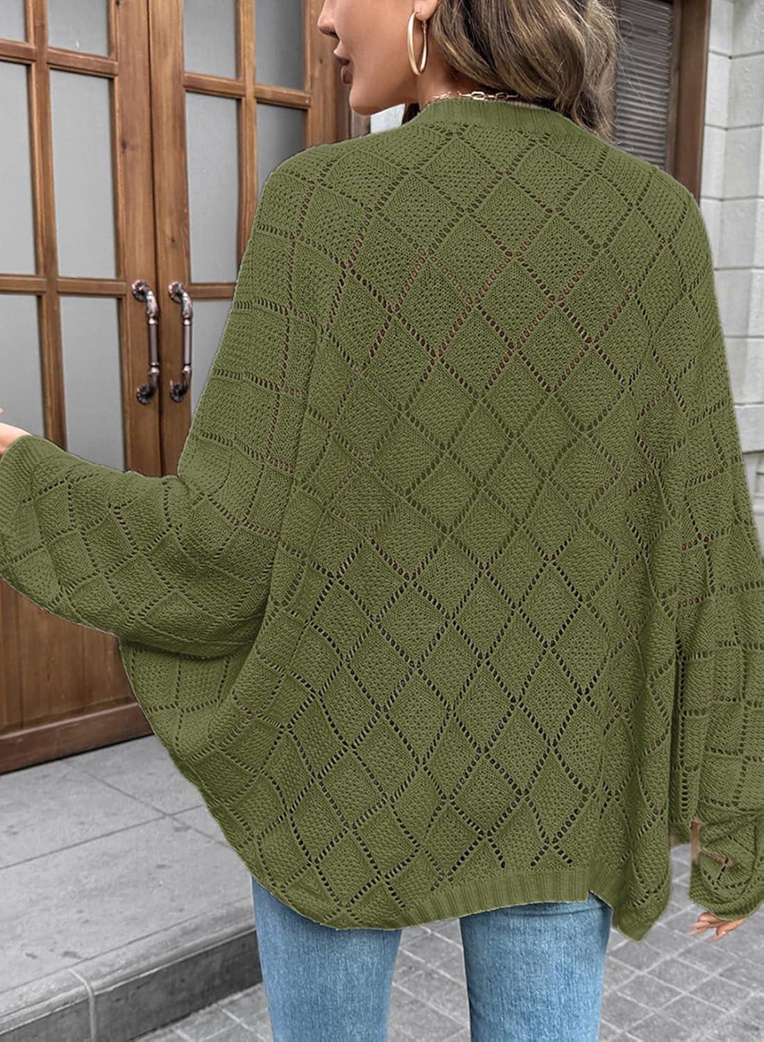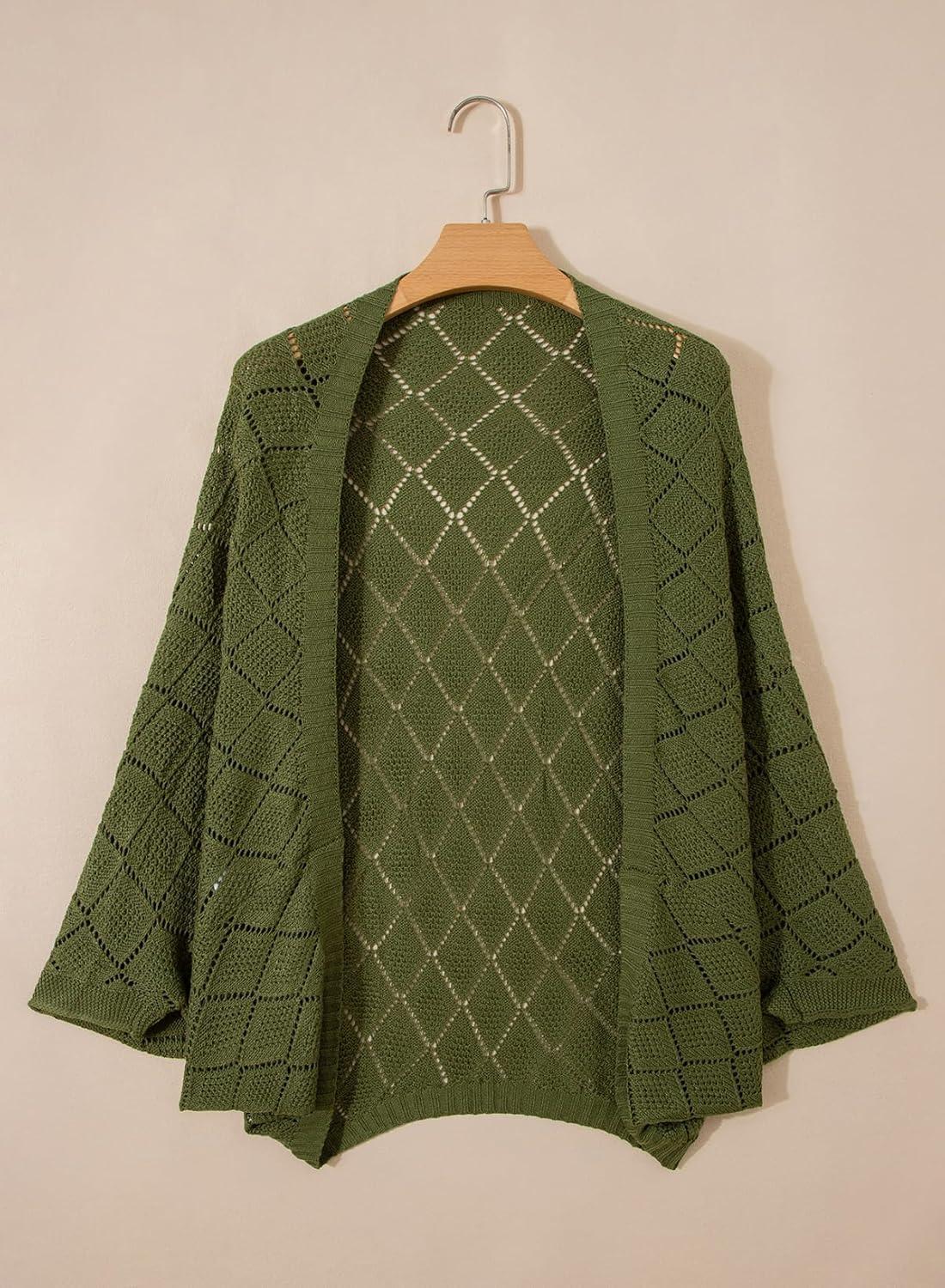 Sidefeel Women's Crochet Oversized Cardigan Sweaters Boho Long Batwing Sleeve Knit Open Front Lightweight Sweater(Green)