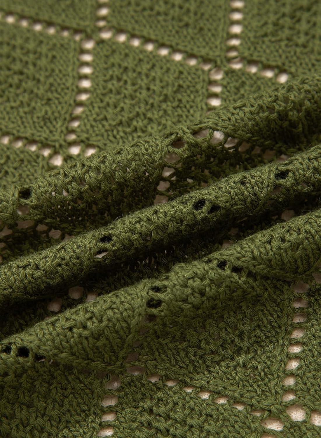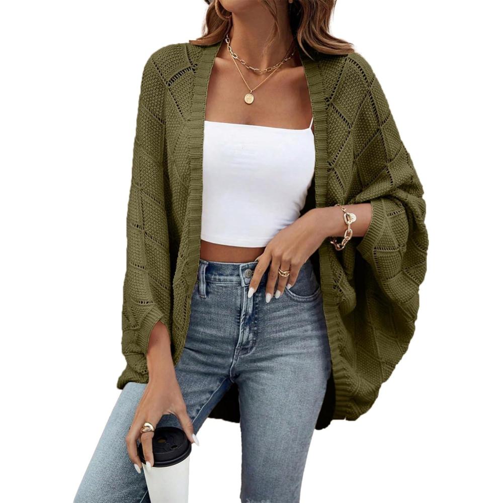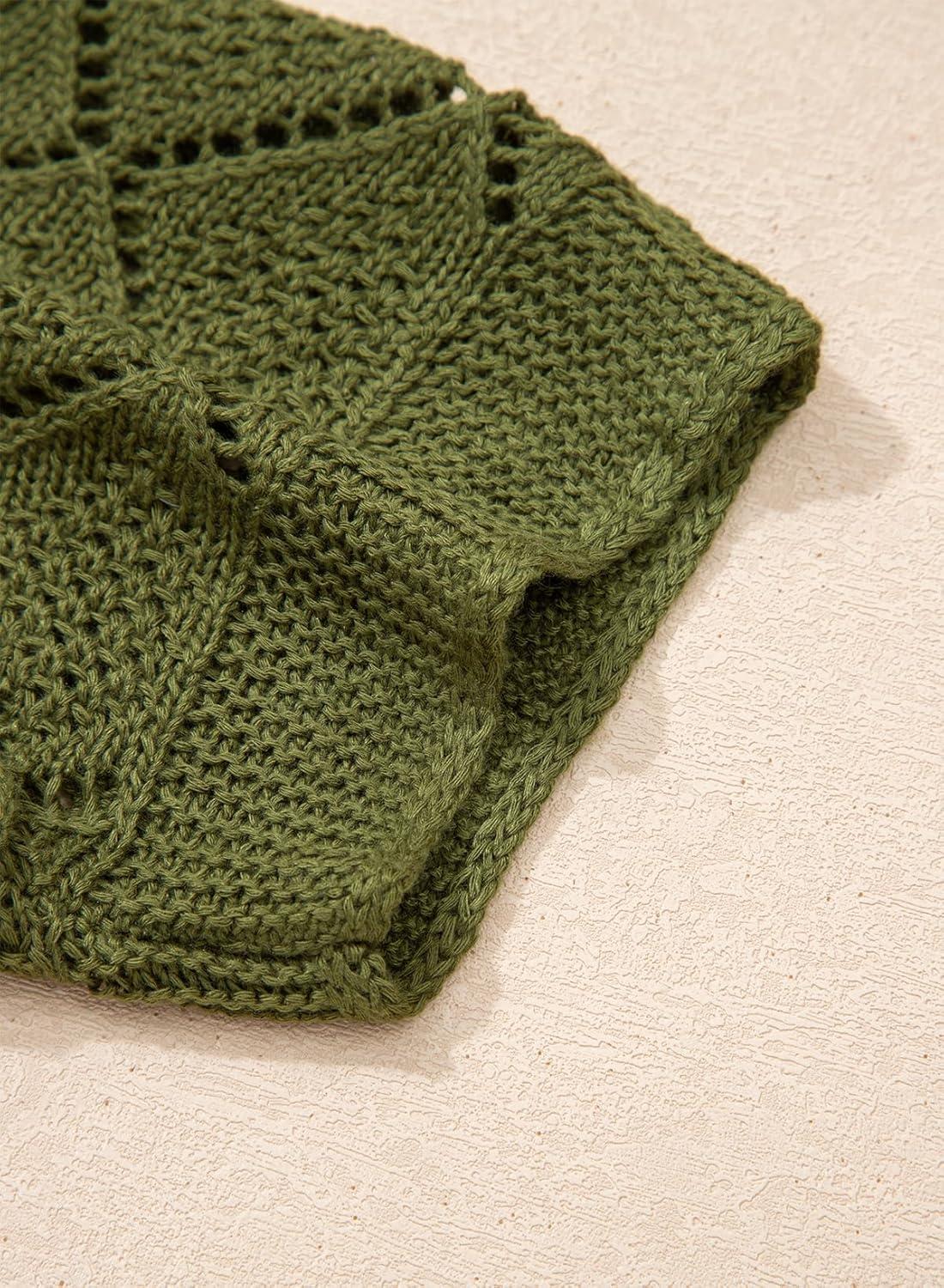 Sidefeel Women's Crochet Oversized Cardigan Sweaters Boho Long Batwing Sleeve Knit Open Front Lightweight Sweater(Green)