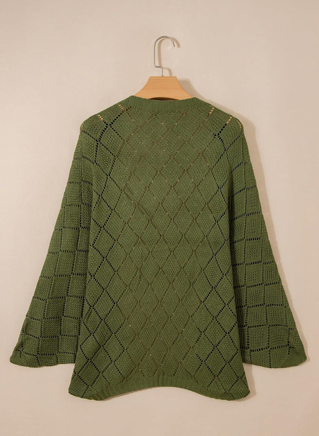 imageSidefeel Womens Crochet Oversized Cardigan Sweaters Boho Long Batwing Sleeve Knit Open Front Lightweight SweaterGreen