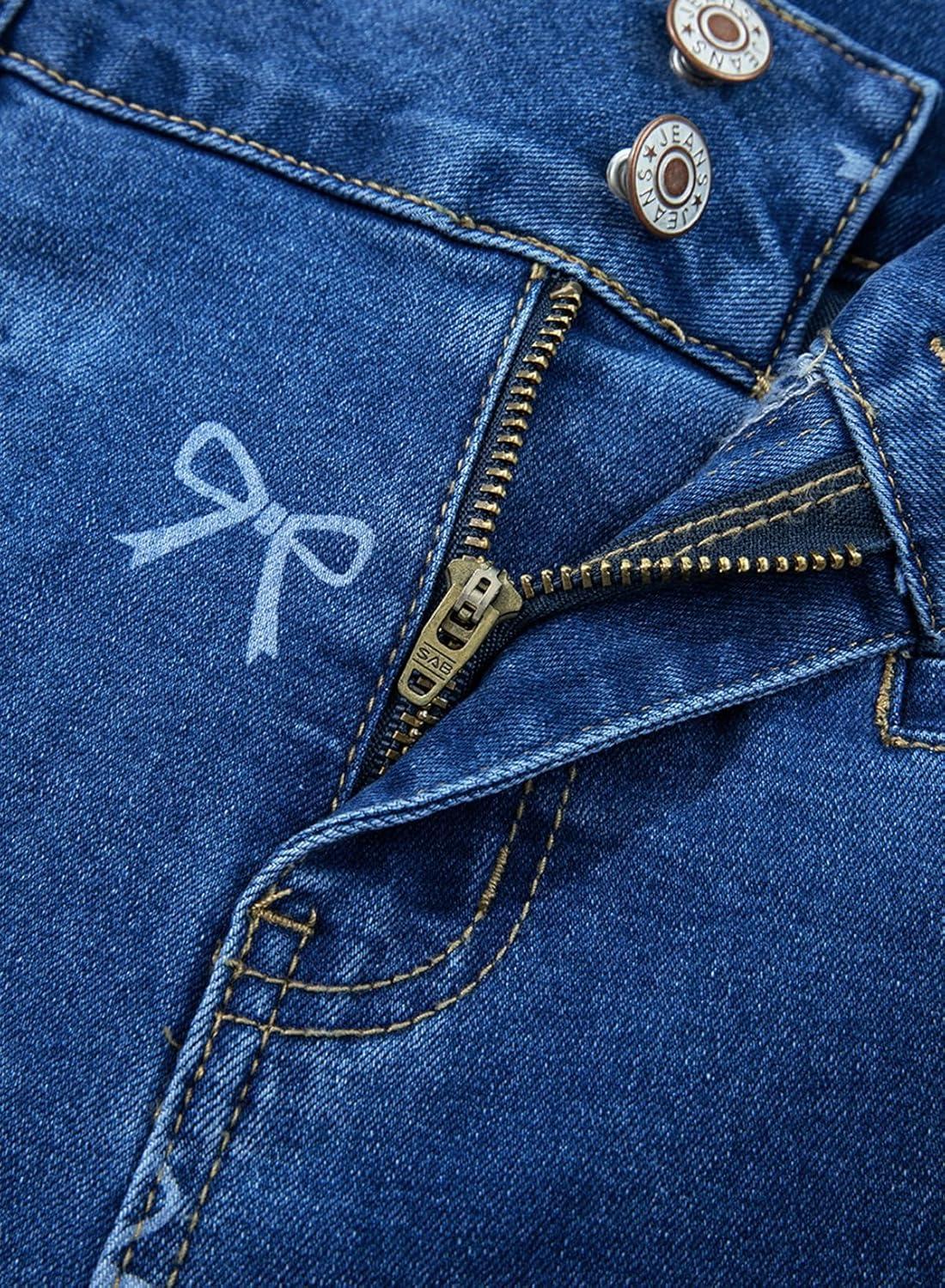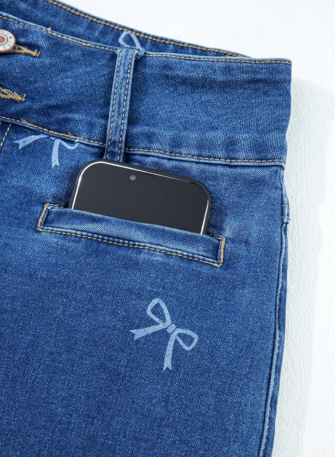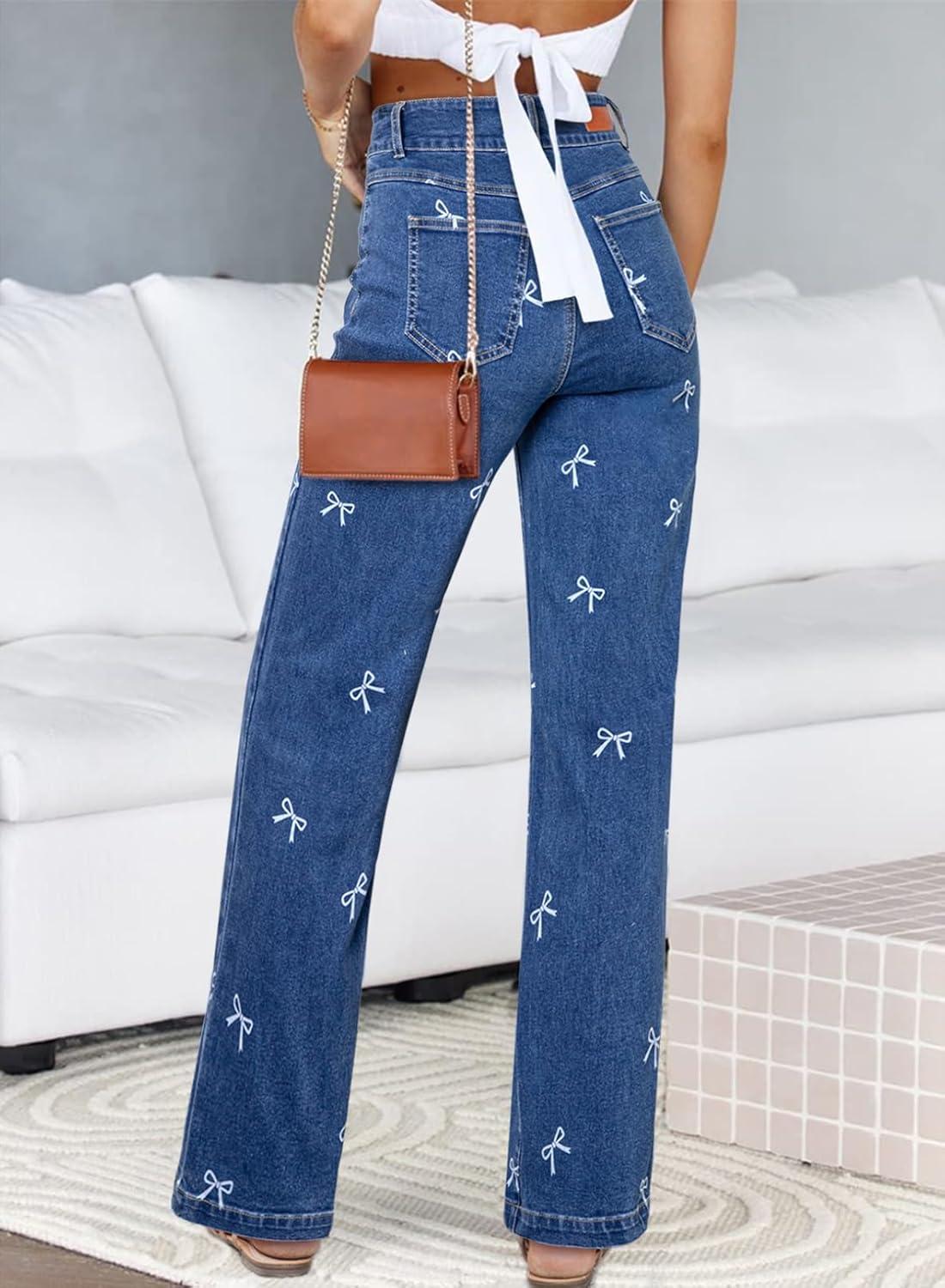 These high-waisted, stretchy jeans with straight leg design and welt pockets are a wardrobe essential for women seeking trendy and versatile denim pants.