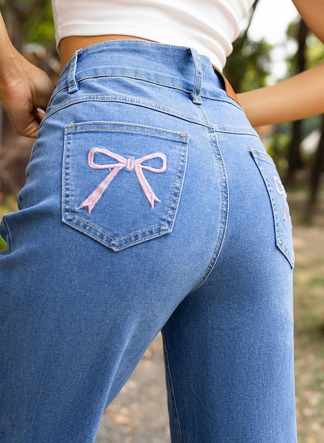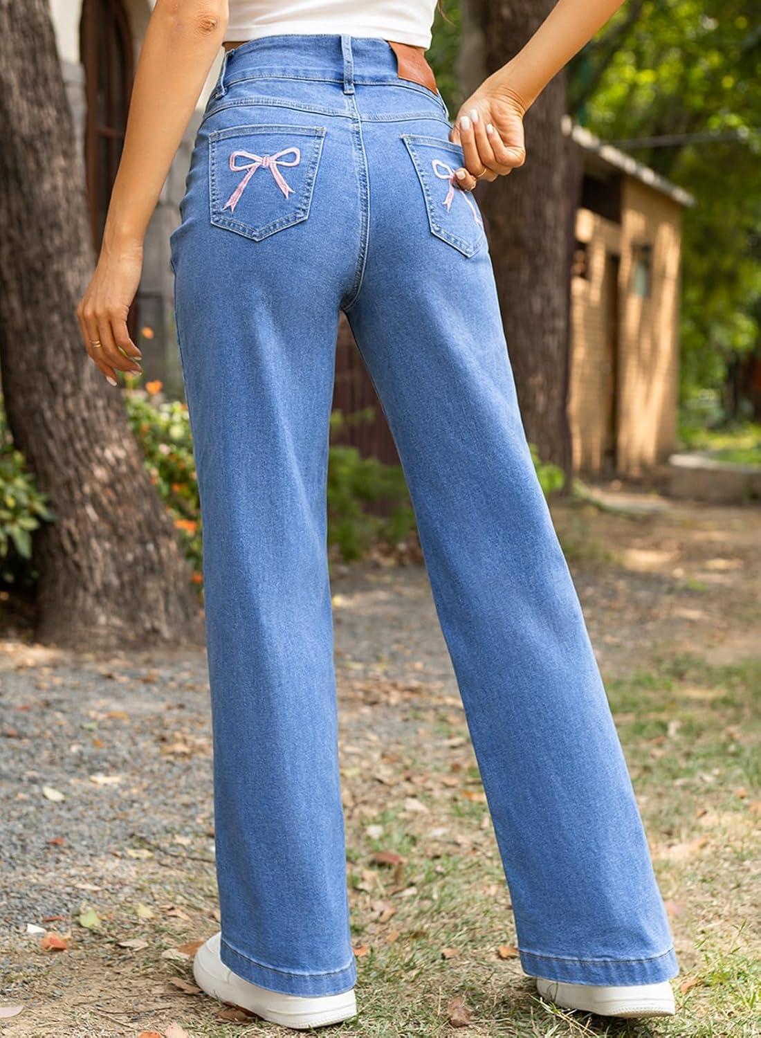 Sidefeel Women’s Jeans High Waisted Straight Leg Stretchy Jeans Trendy Welt Pockets Loose Wide Leg Zimbaplatinum Denim Pants(Y Sky Blue)