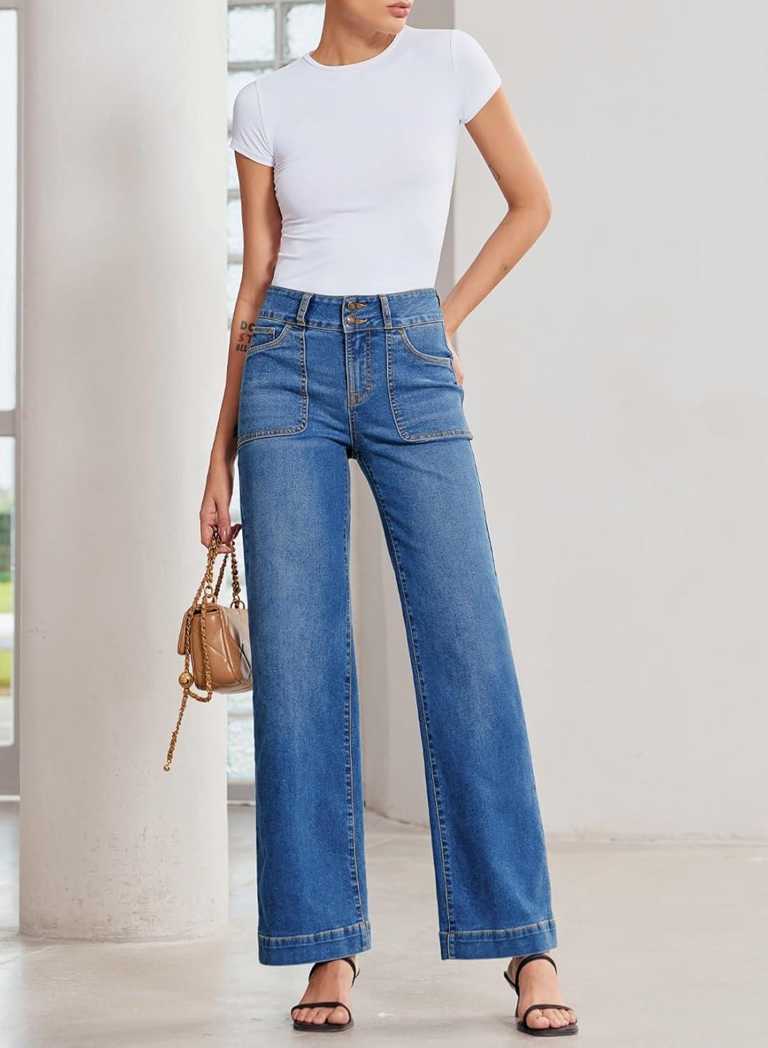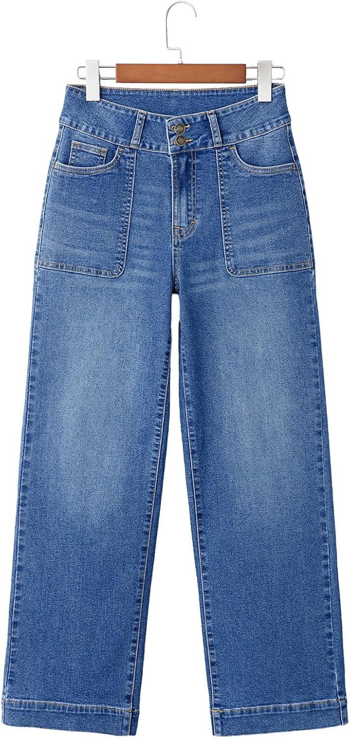 Sidefeel Women’s Straight Leg Jeans High Waisted Stretchy Tummy Control Wide Leg Denim Pants Fall Outfits(Iceland Blue)