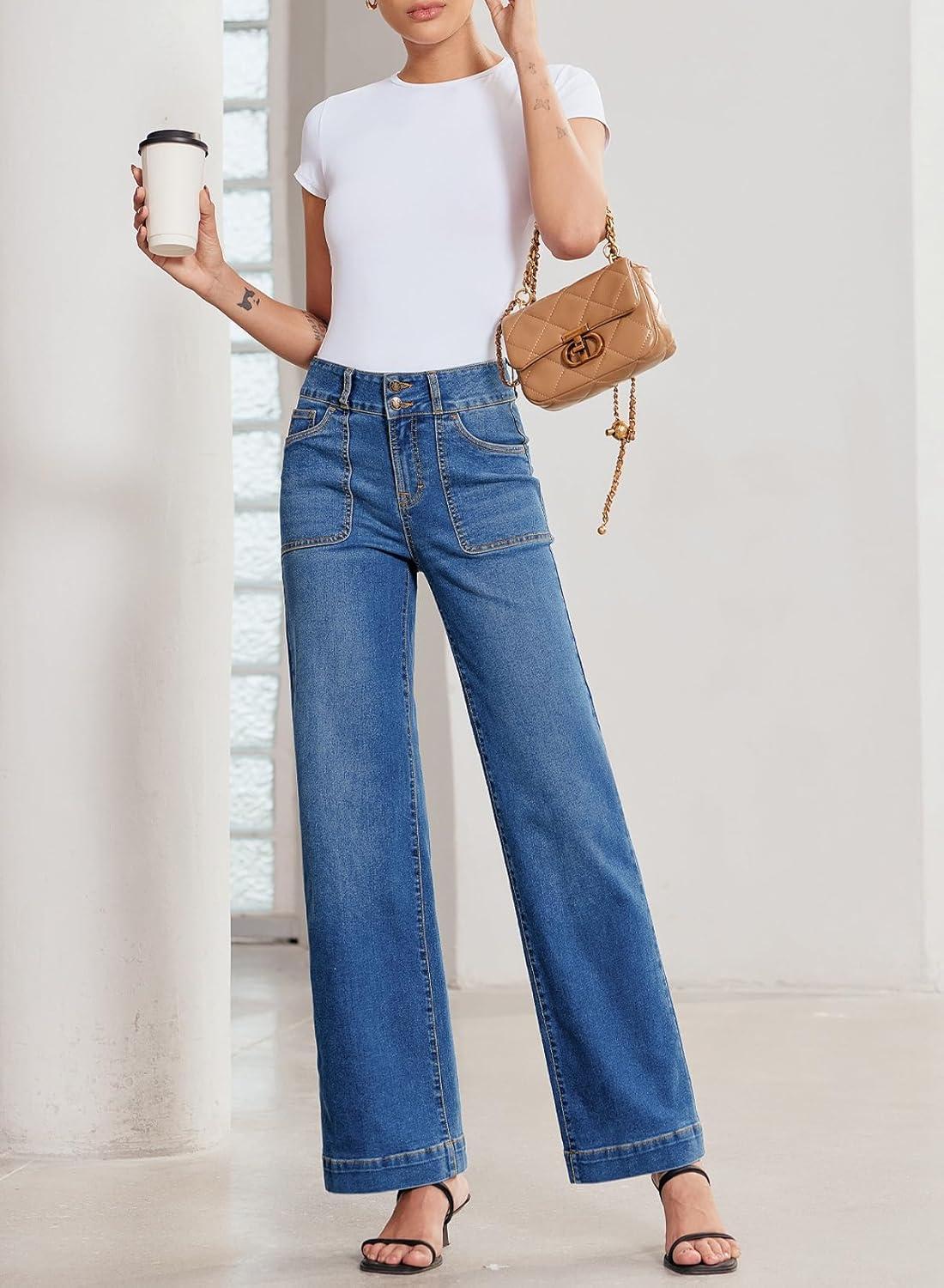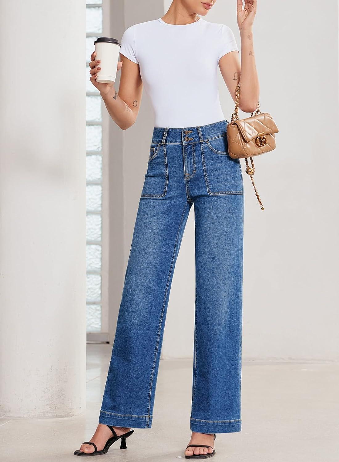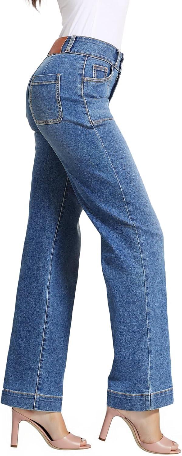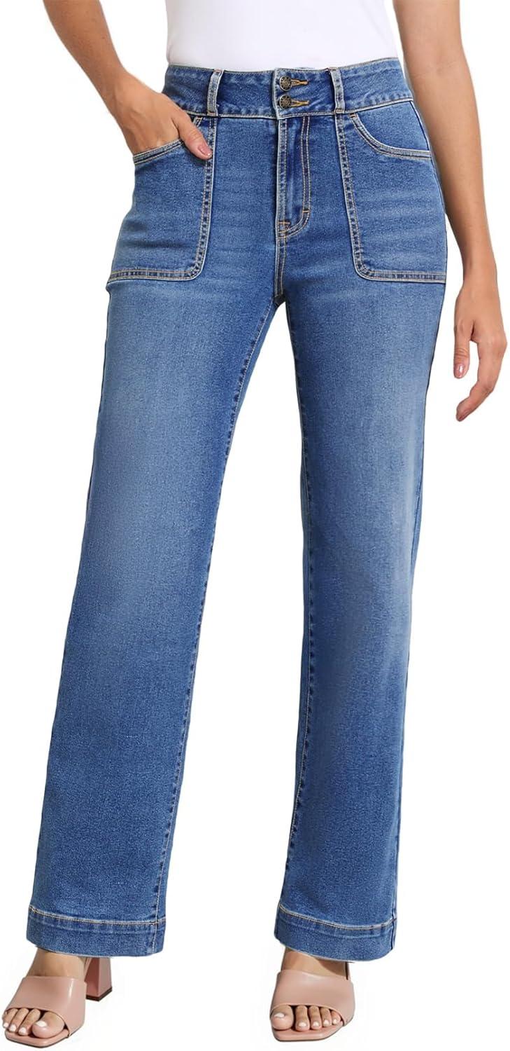 Sidefeel Women’s Straight Leg Jeans High Waisted Stretchy Tummy Control Wide Leg Denim Pants Fall Outfits(Bluing)