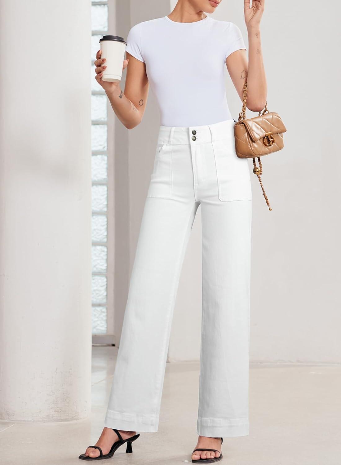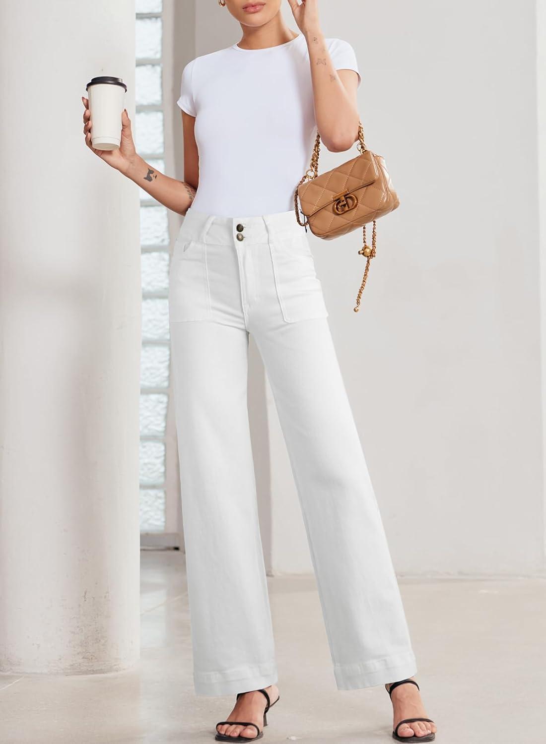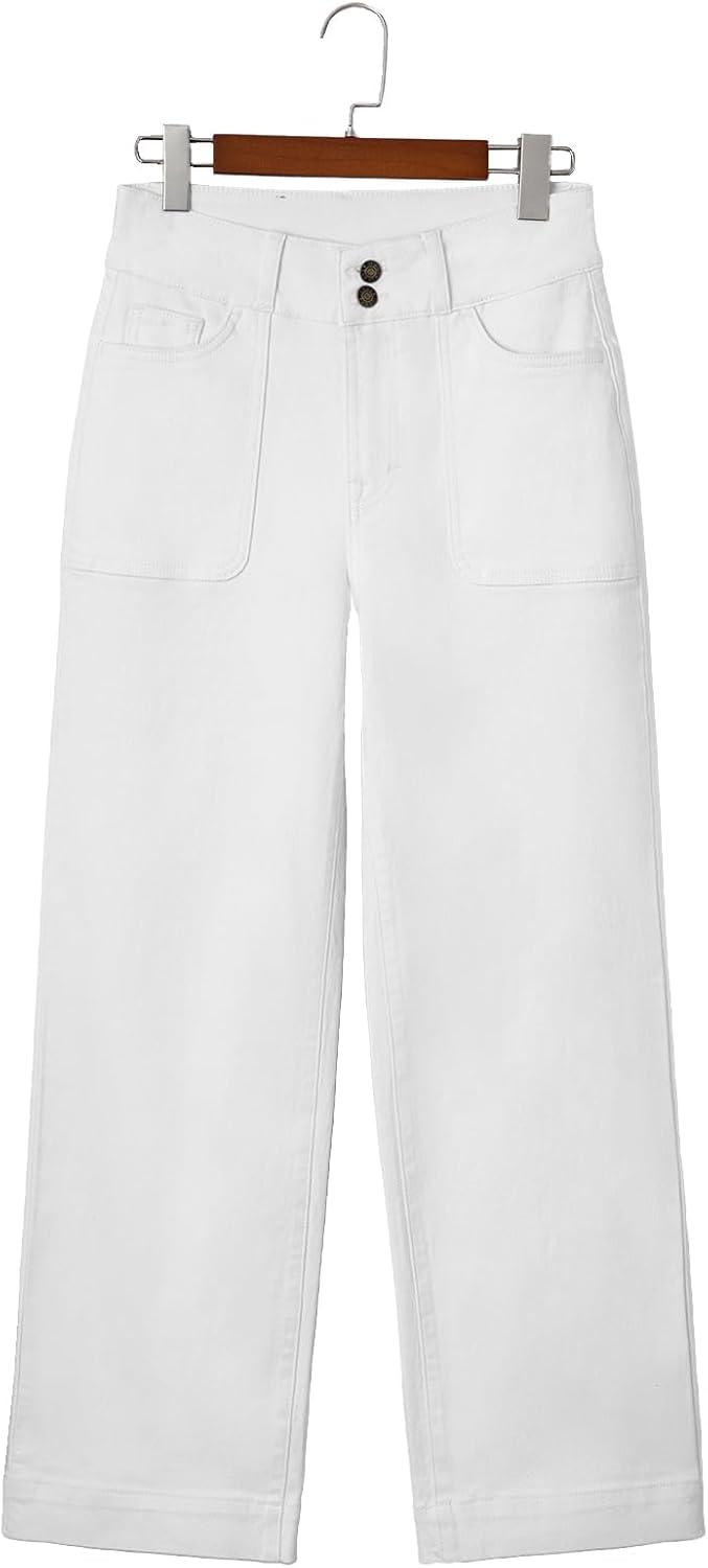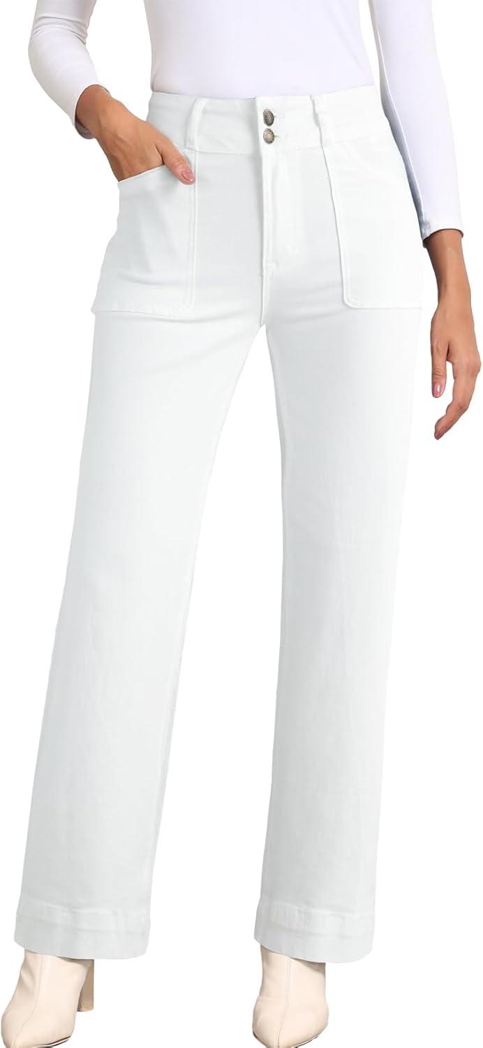 Sidefeel Women’s Straight Leg Jeans High Waisted Stretchy Tummy Control Wide Leg Denim Pants Fall Outfits(White)