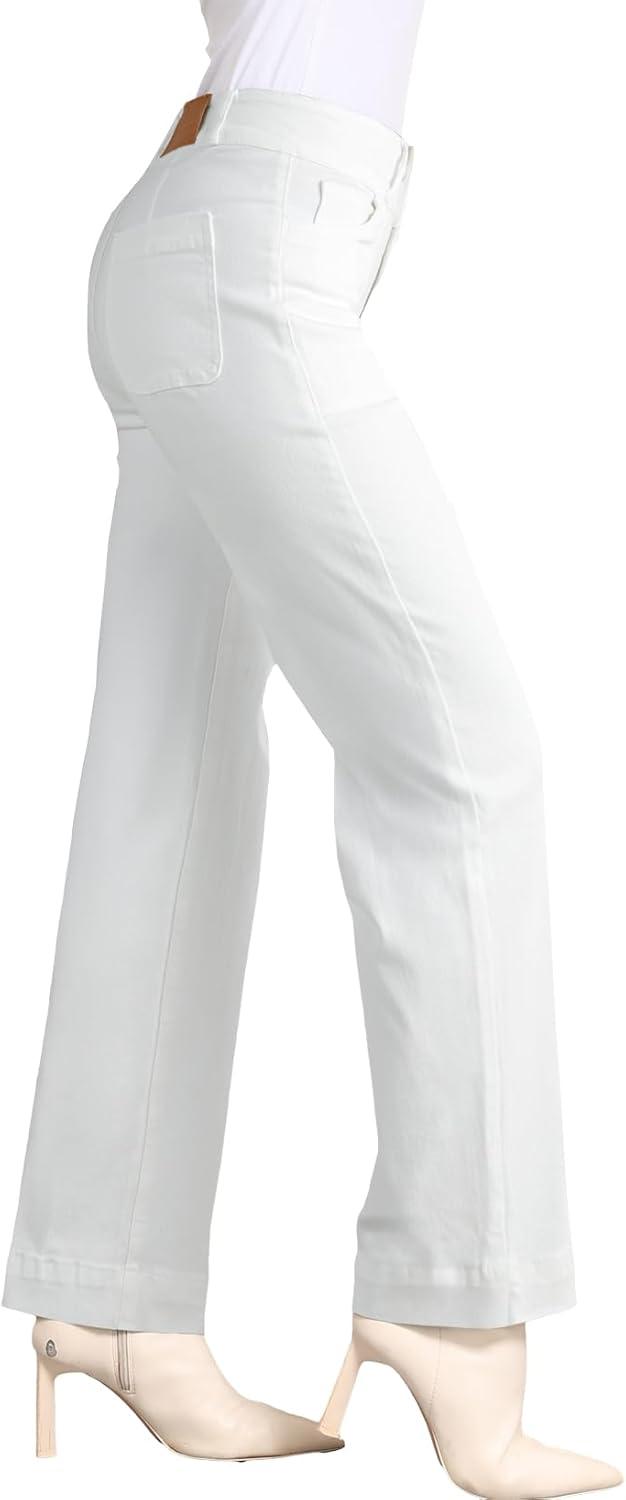 Sidefeel Women's Straight Leg Jeans High Waisted Stretchy Tummy Control Wide Leg Denim Pants Fall Outfits(White)