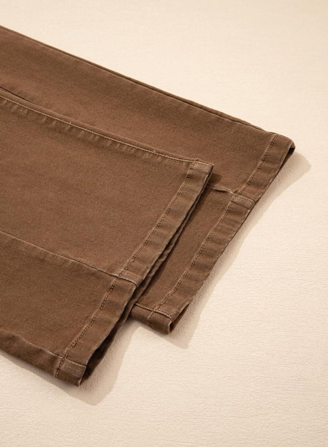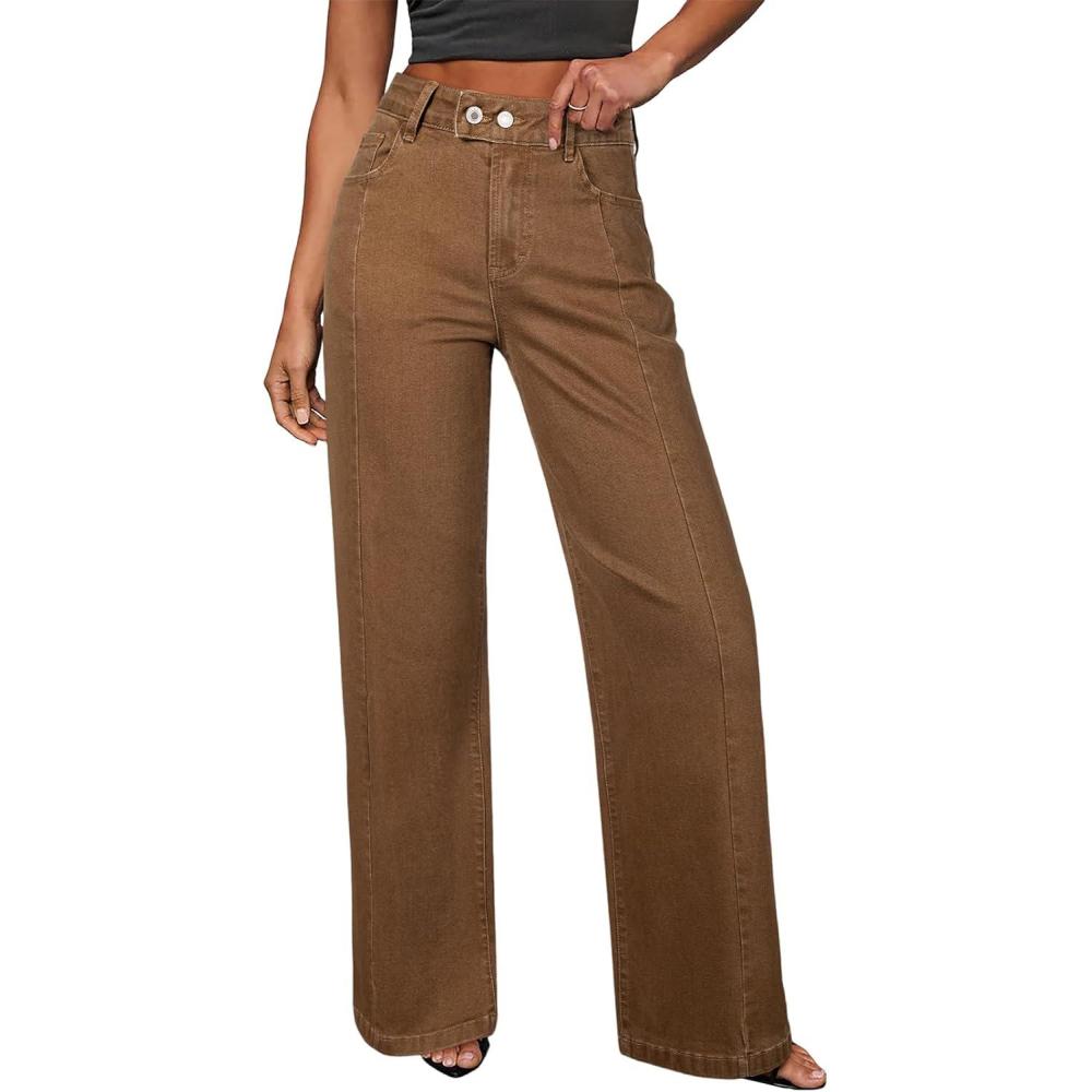 imageSidefeel Womens Wide Leg Jeans High Waisted Stretchy Front Seam Denim PantsBrown
