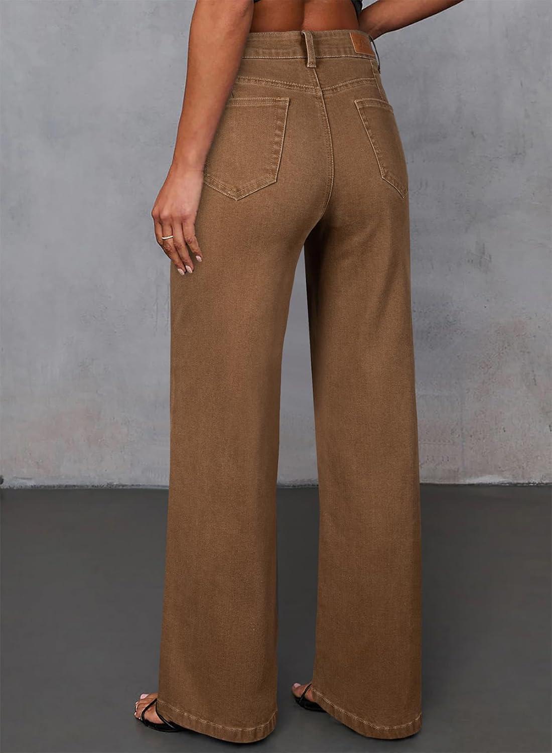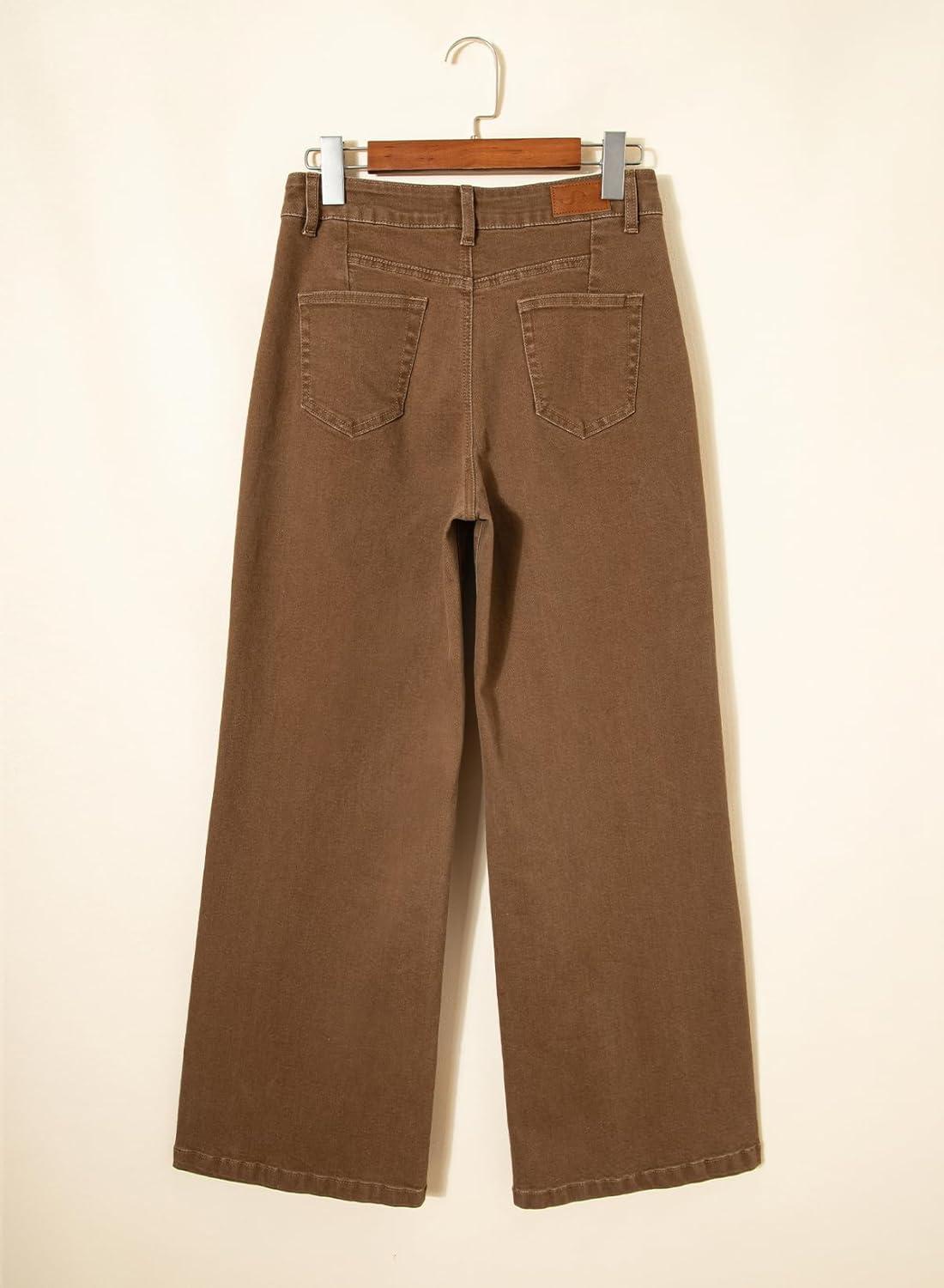 Sidefeel Women’s Wide Leg Jeans High Waisted Stretchy Front Seam Denim Pants(Brown)