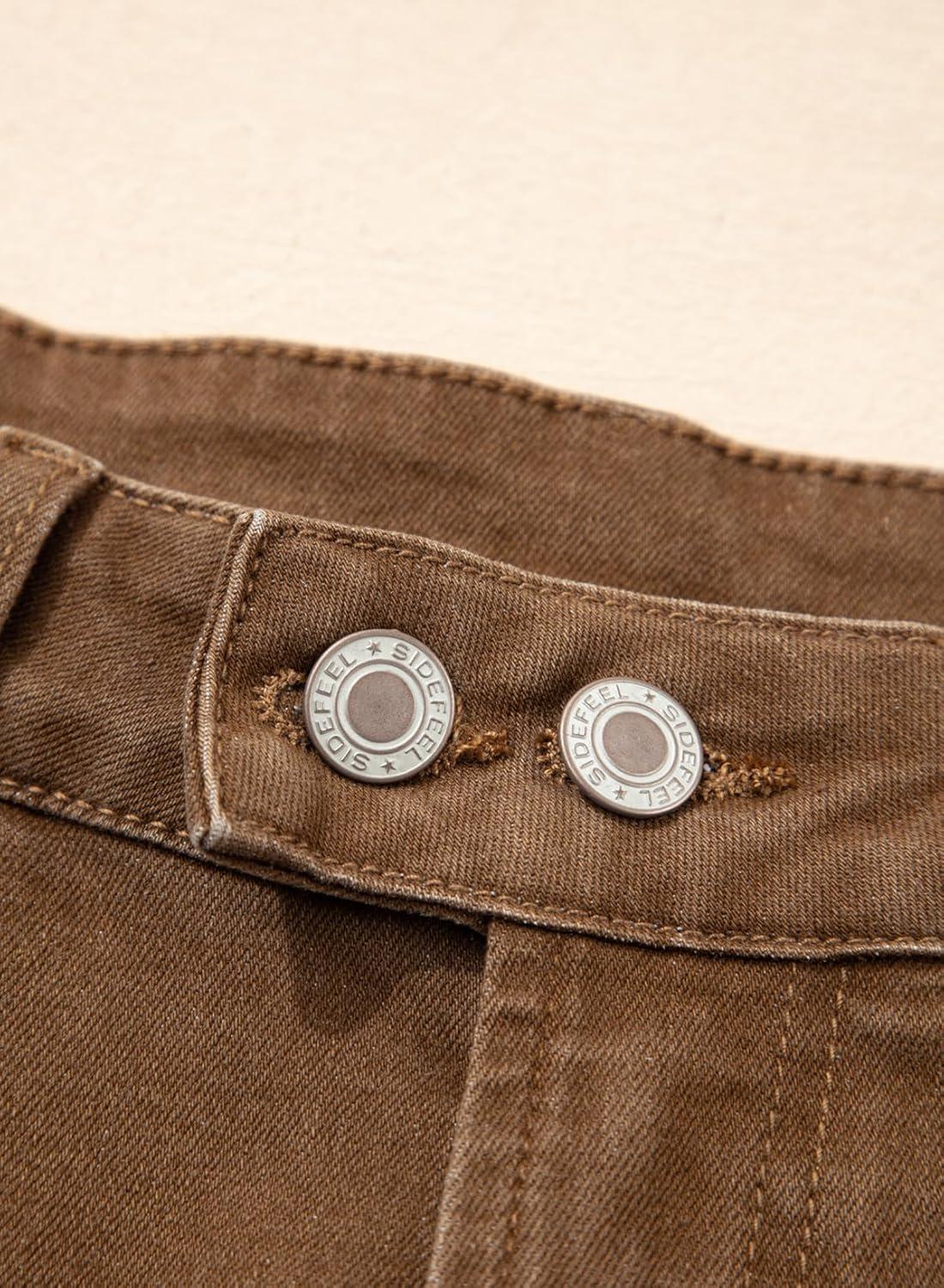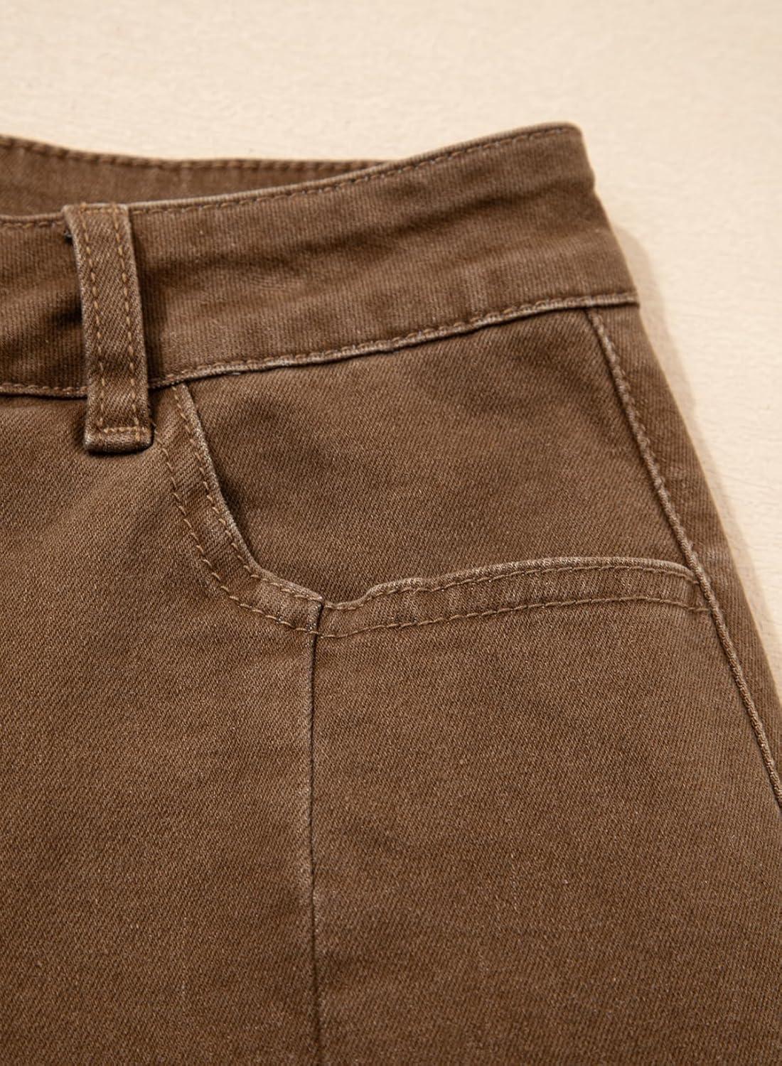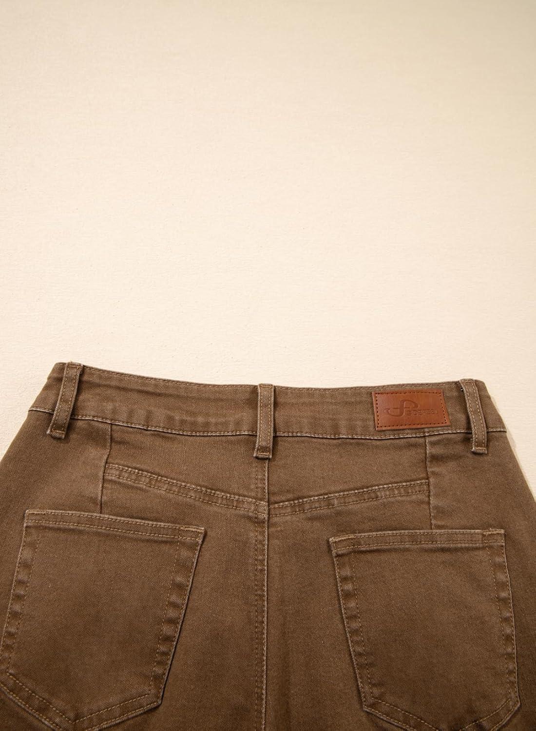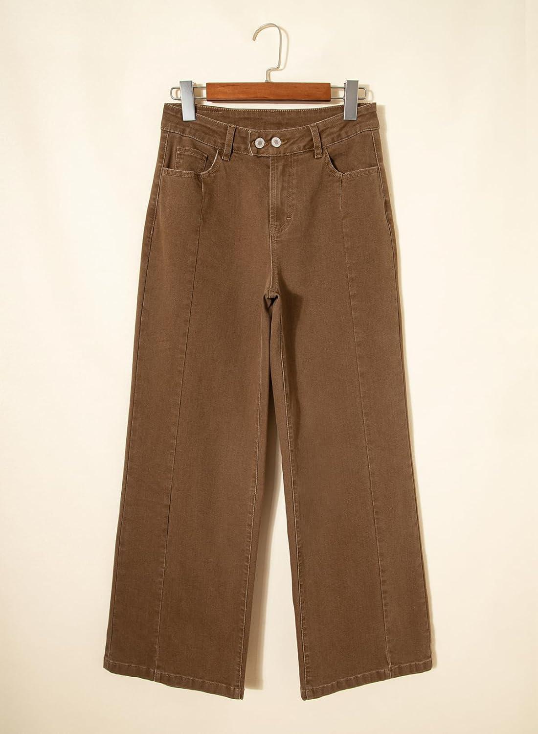 Sidefeel Women's Wide Leg Jeans High Waisted Stretchy Front Seam Denim Pants(Brown)