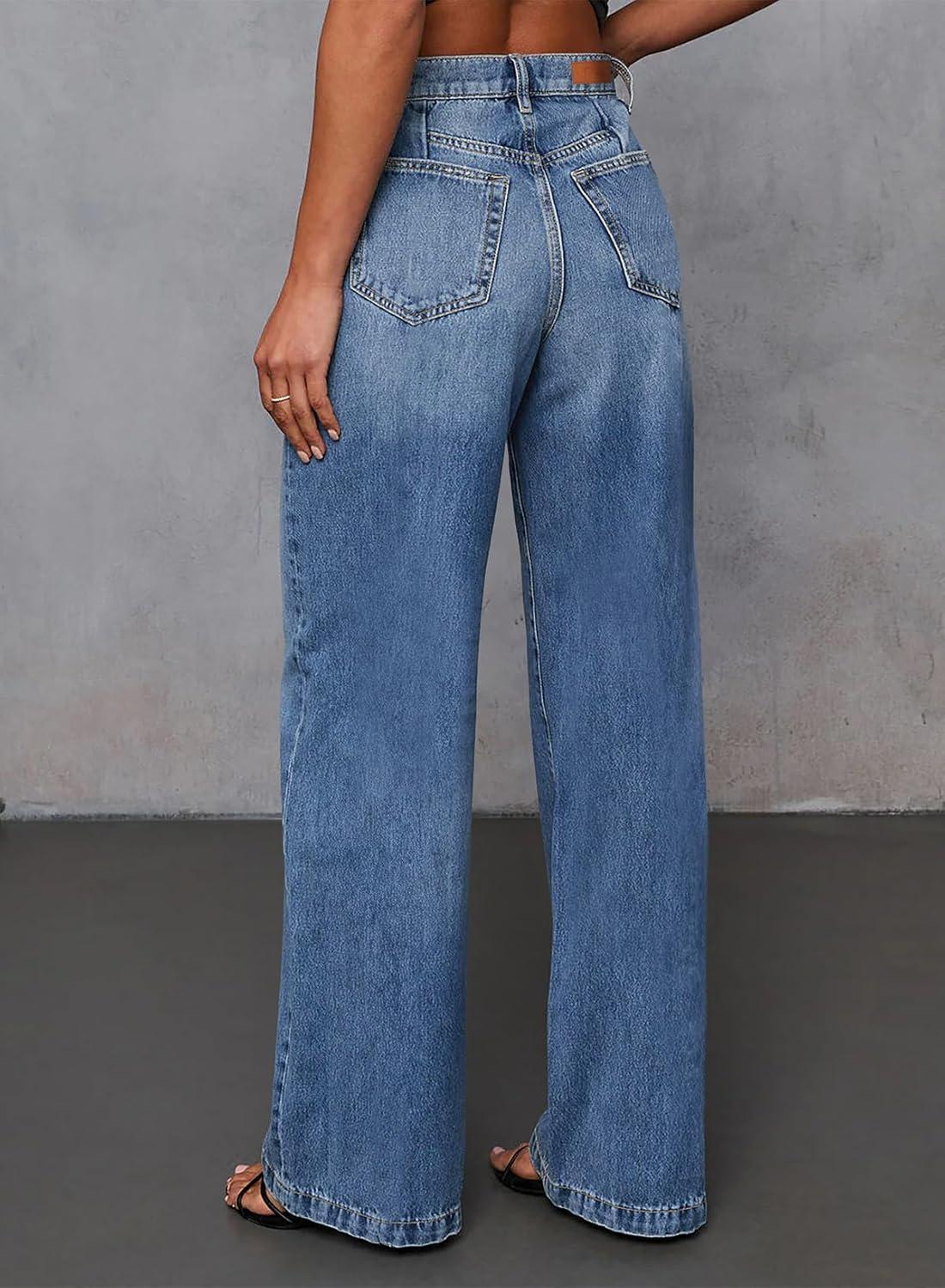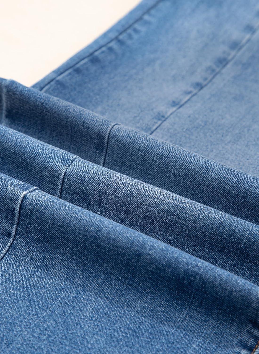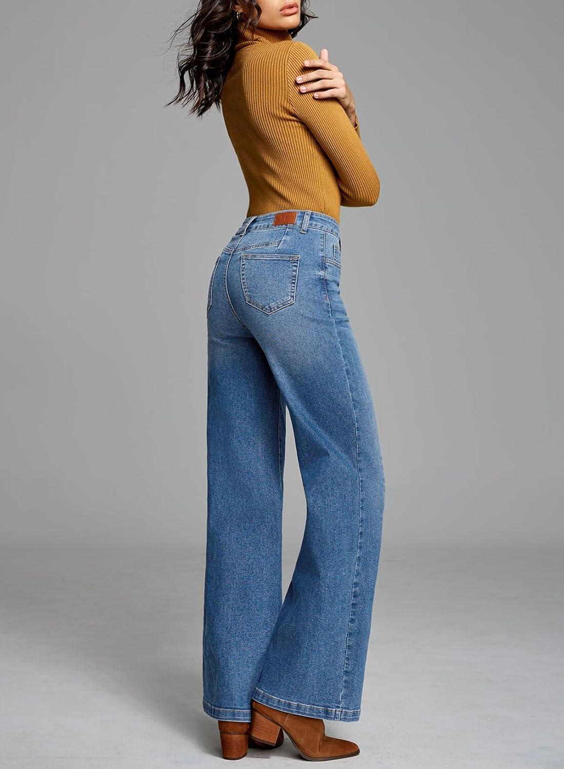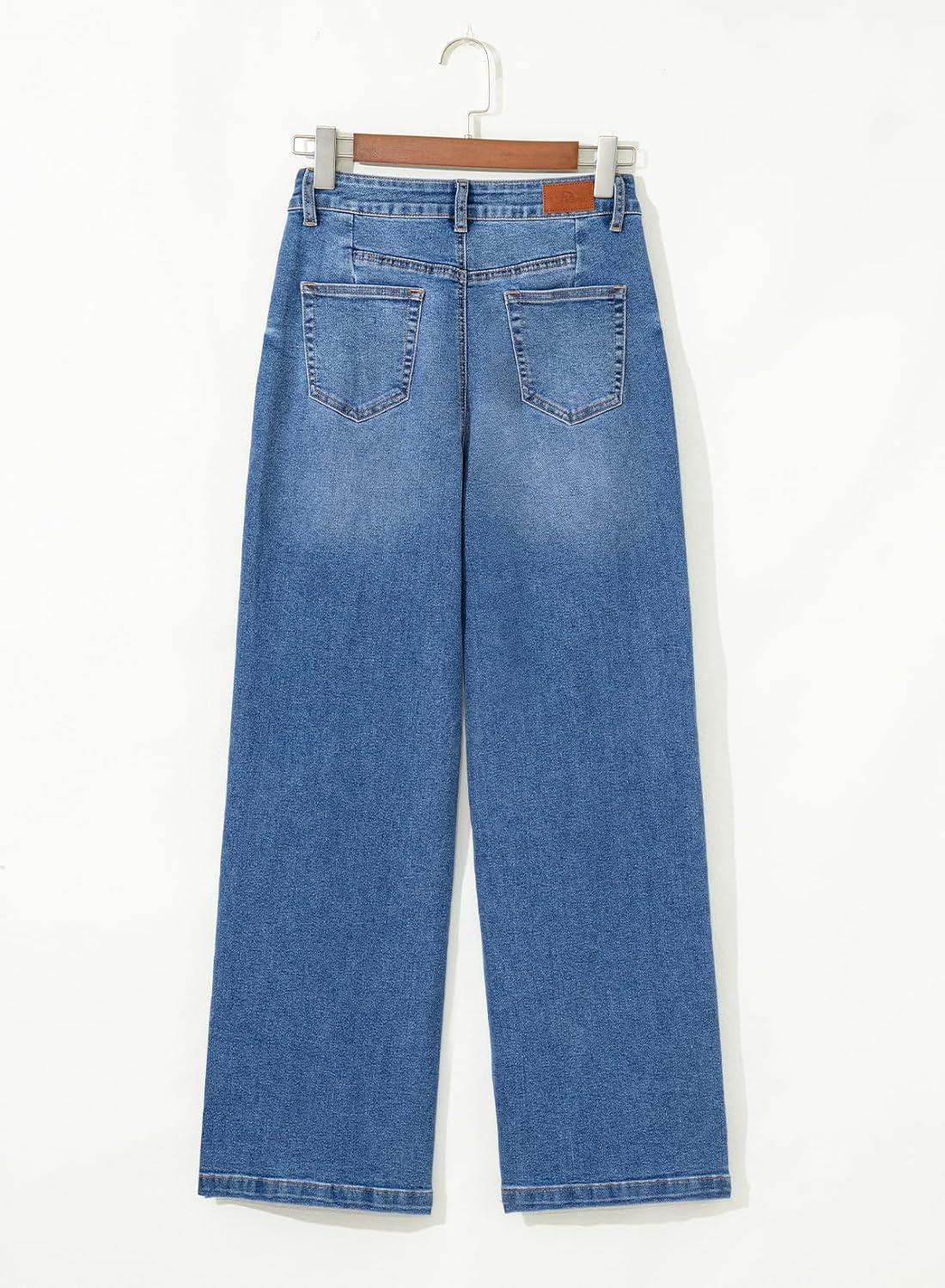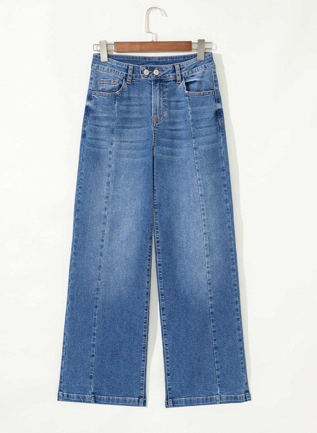 Sidefeel Women’s Wide Leg Jeans High Waisted Stretchy Front Seam Denim Pants(Sky Blue)