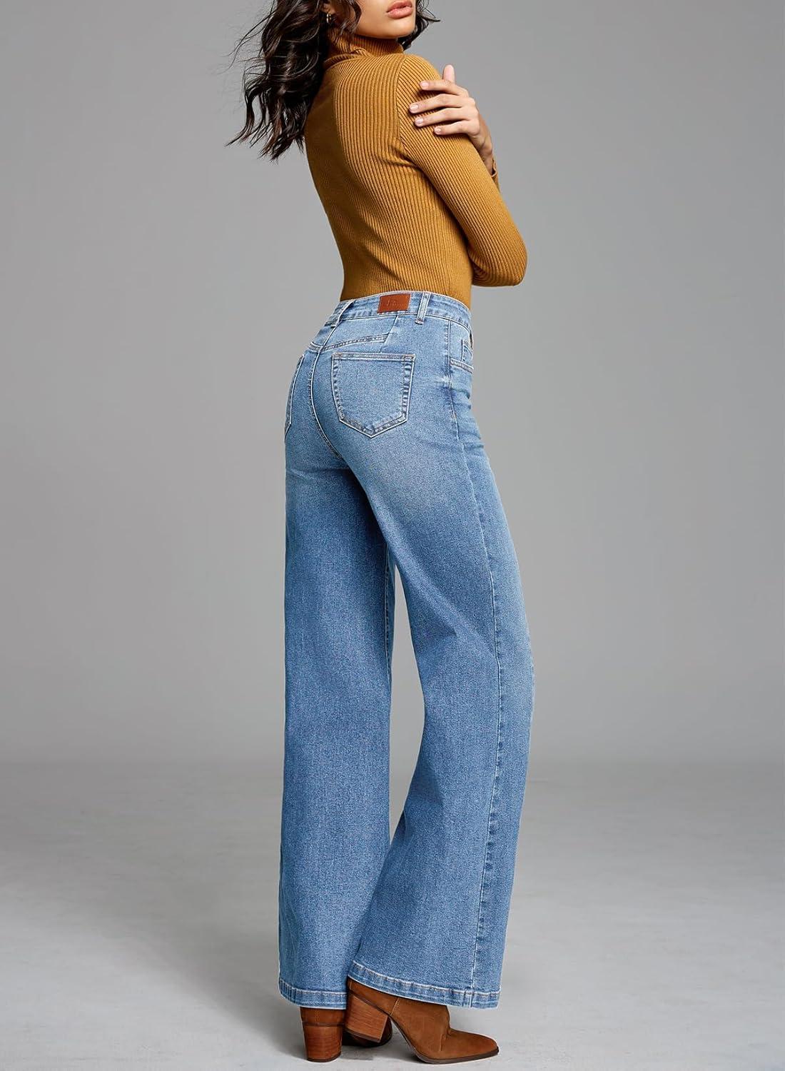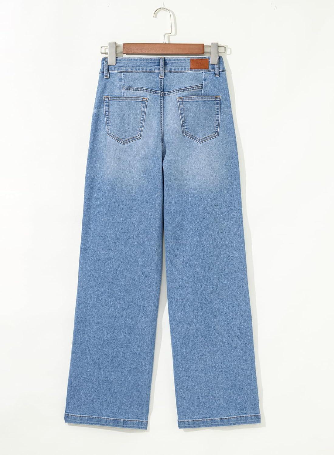 Sidefeel Women’s Wide Leg Jeans High Waisted Stretchy Front Seam Denim Pants(Sky Blue)