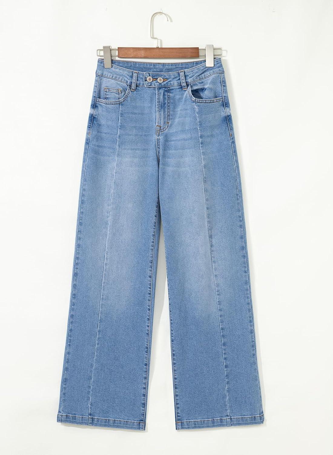 imageSidefeel Womens Wide Leg Jeans High Waisted Stretchy Front Seam Denim PantsSky Blue