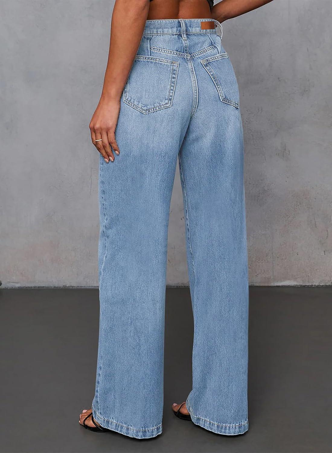 Sidefeel Women’s Wide Leg Jeans High Waisted Stretchy Front Seam Denim Pants(Light Blue)