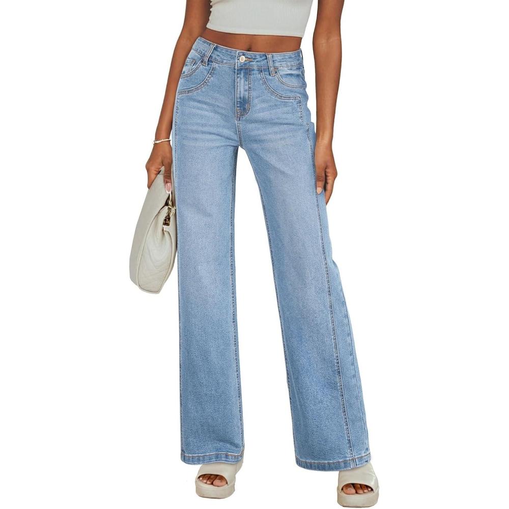 Sidefeel Women’s Wide Leg Jeans High Waisted Stretchy Jeans Straight Leg Trendy Patchwork Loose Fit Denim Pants(Iceland Blue)
