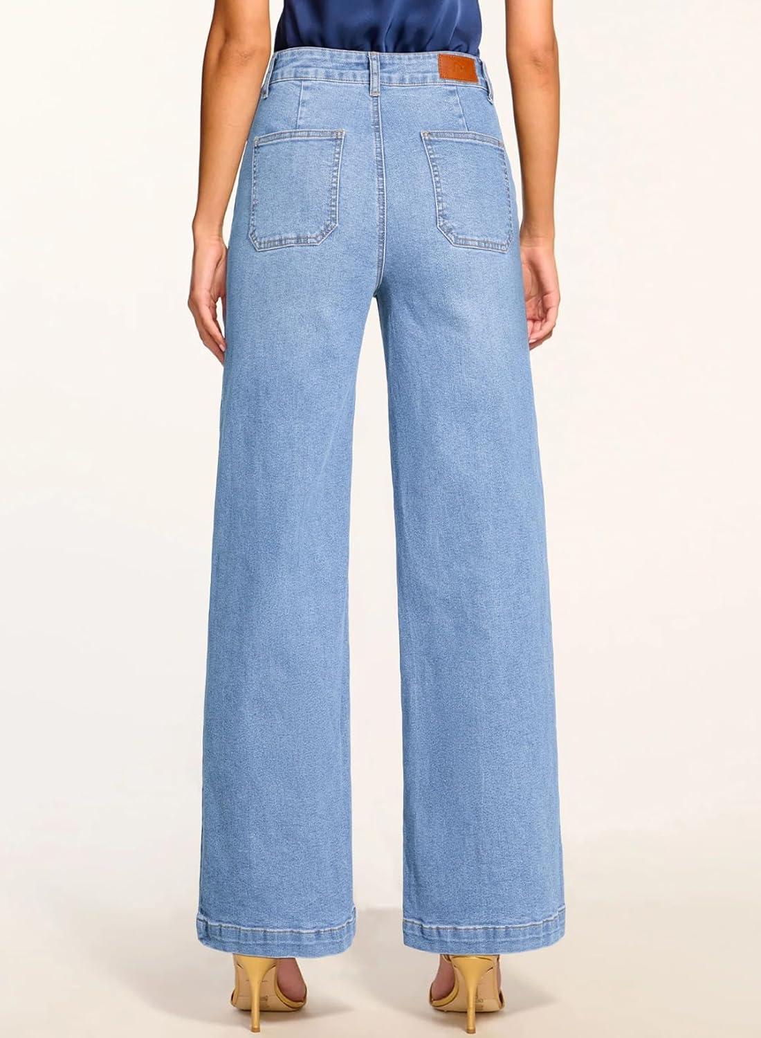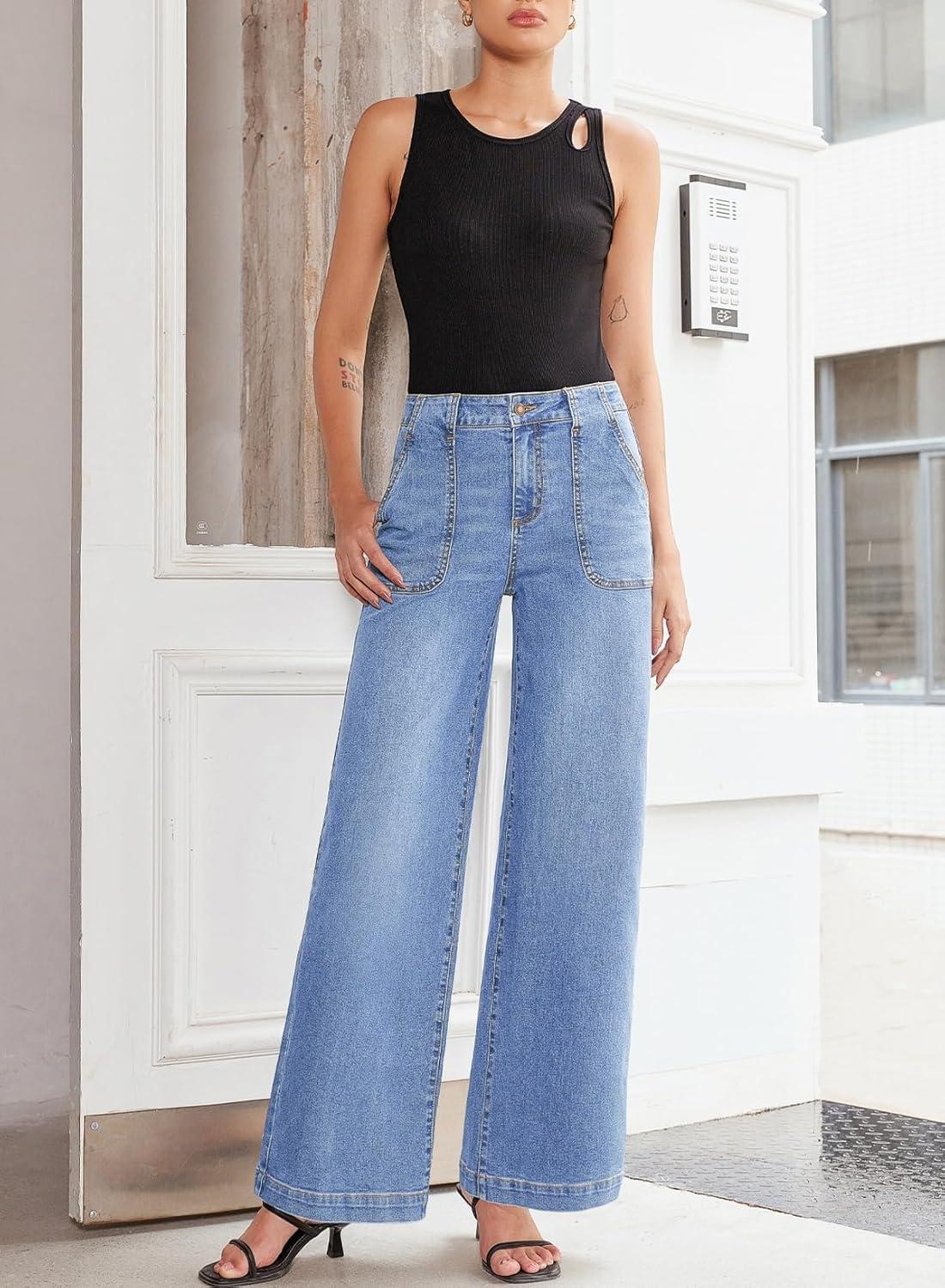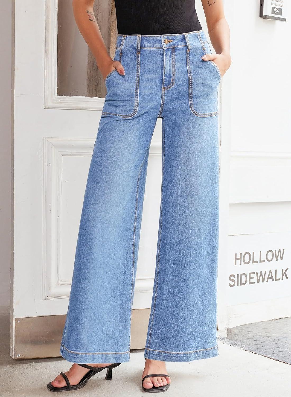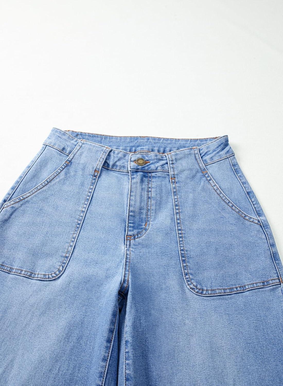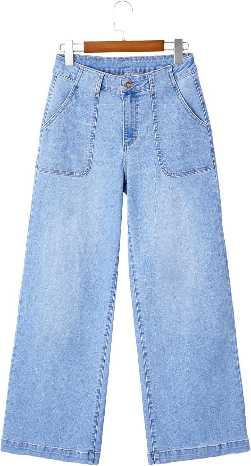 Sidefeel Womens Wide Leg Jeans High Waisted Stretchy Straight Leg Baggy Denim Pants with Pockets(Iceland Blue)