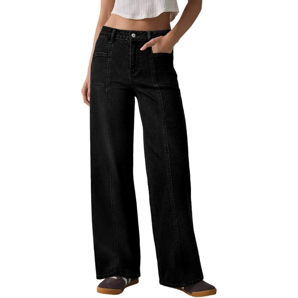imageSidefeel Womens Wide Leg Jeans High Waisted Stretchy Straight Leg Baggy Denim PantsBlack