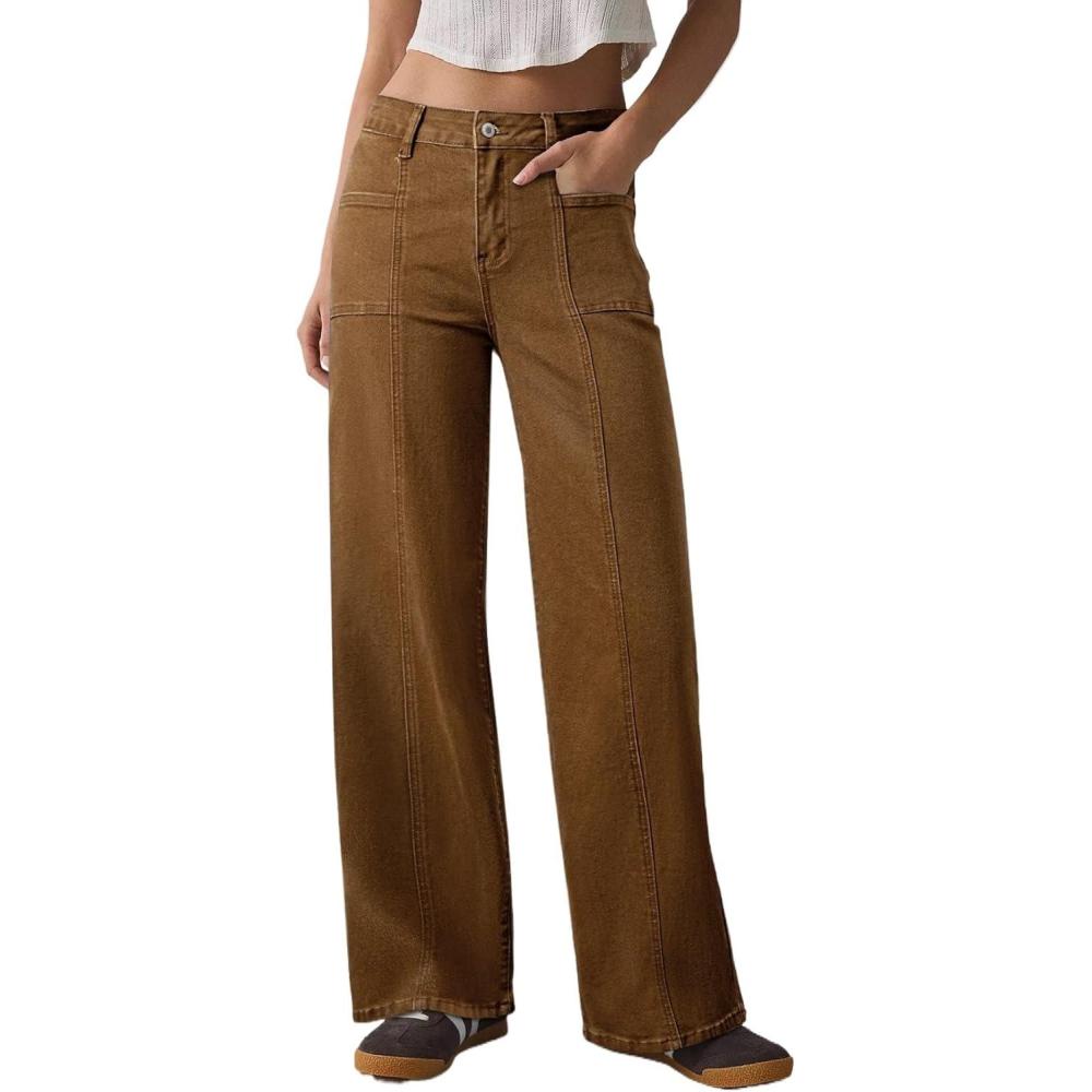 imageSidefeel Womens Wide Leg Jeans High Waisted Stretchy Straight Leg Baggy Denim PantsBrown