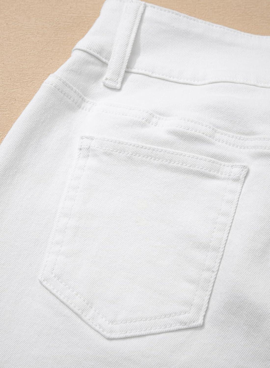 Sidefeel Women’s Wide Leg Jeans High Waisted Stretchy Straight Leg Jeans Trendy Seamed Front Loose Denim Pants(Cream White)
