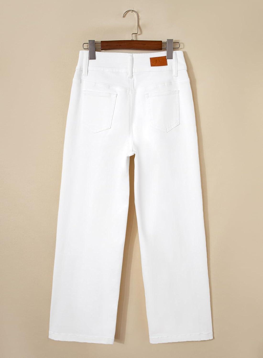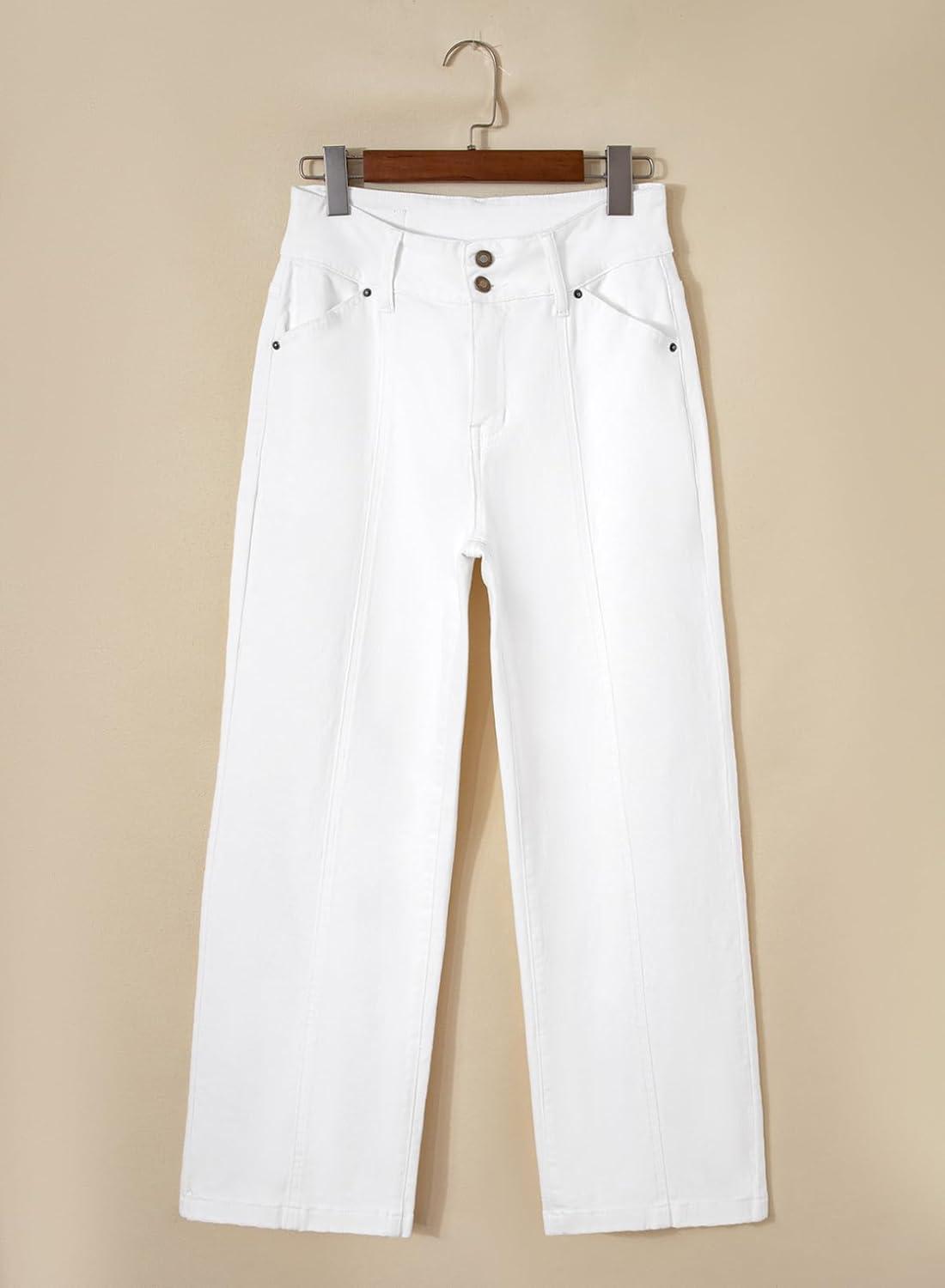 Sidefeel Women's Wide Leg Jeans High Waisted Stretchy Straight Leg Jeans Trendy Seamed Front Loose Denim Pants(Cream White)