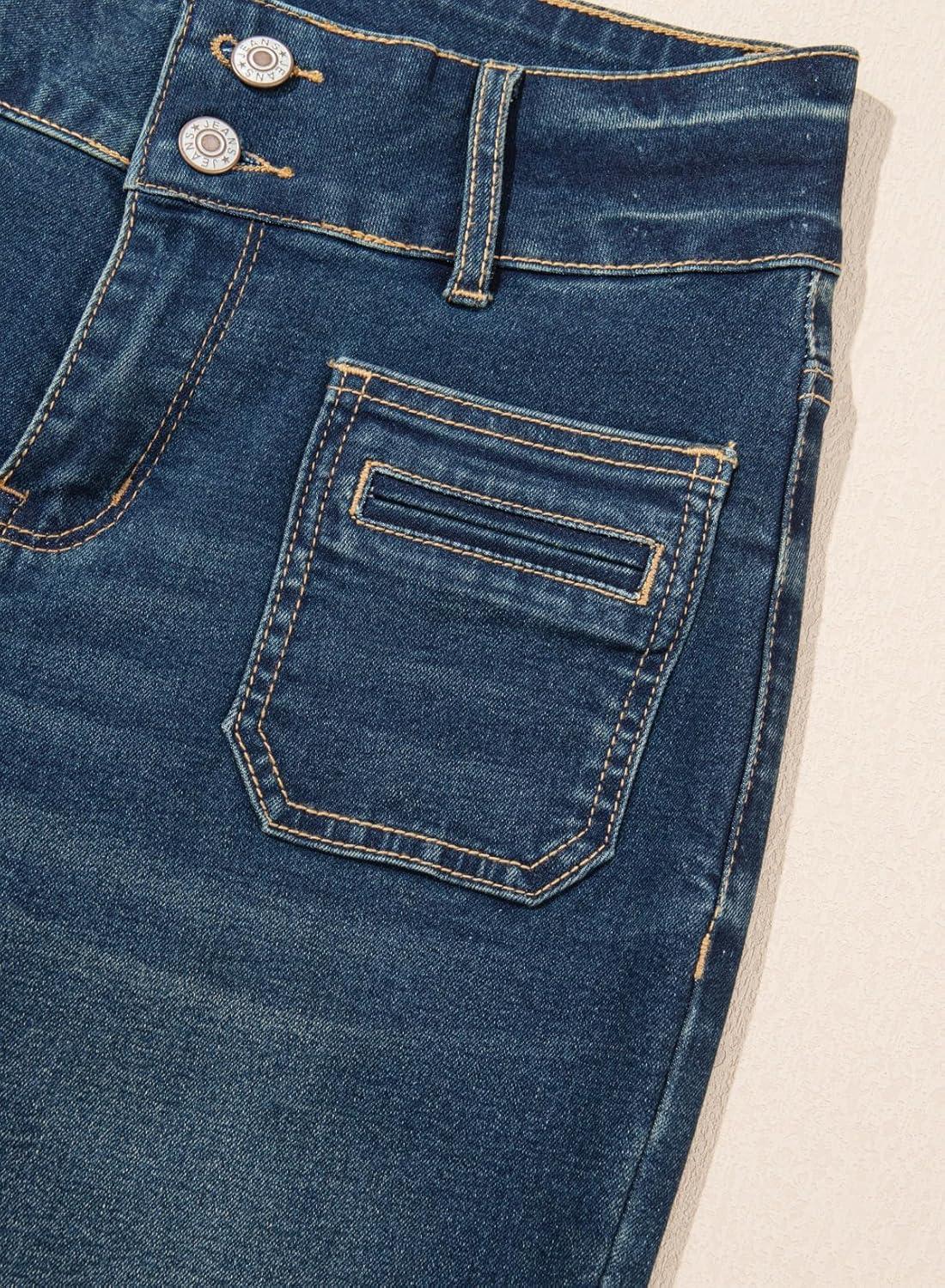 imageSidefeel Womens Wide Leg Jeans High Waisted Tummy Control Stretchy Pockets Front Straight Leg JeansSky Blue